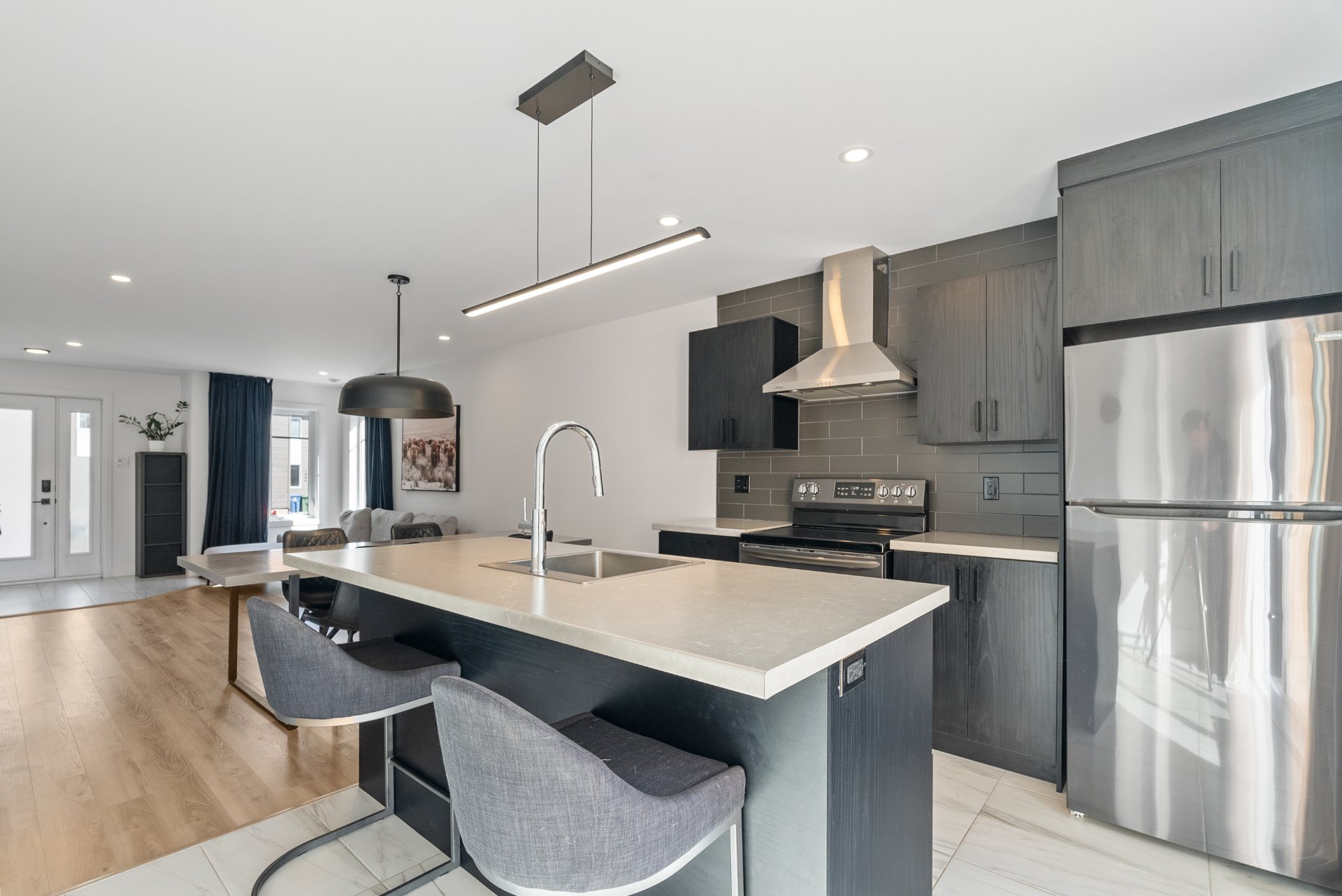 VOIR LE VIDÉO :)* Superbe jumelé à étages, unité de façade, garantie jusqu'en 2027. Rez-de-chaussée lumineux à aire ouverte avec salon convivial, cuisine moderne dotée d'un îlot central, coin repas, walk-in garde-manger et abondant rangement. Grande porte-patio de 8 pieds menant à une terrasse idéale pour recevoir. À l'étage, 3 chambres dont la principale avec walk-in, ainsi qu'une salle de bain avec bain et douche séparés. Sous-sol en finition prévoyant 1 chambres, 2e salle de bain, salle familiale et salle de lavage OU une 5e chambre. Emplacement de choix près des écoles, cégep, parcs et transport en commun.