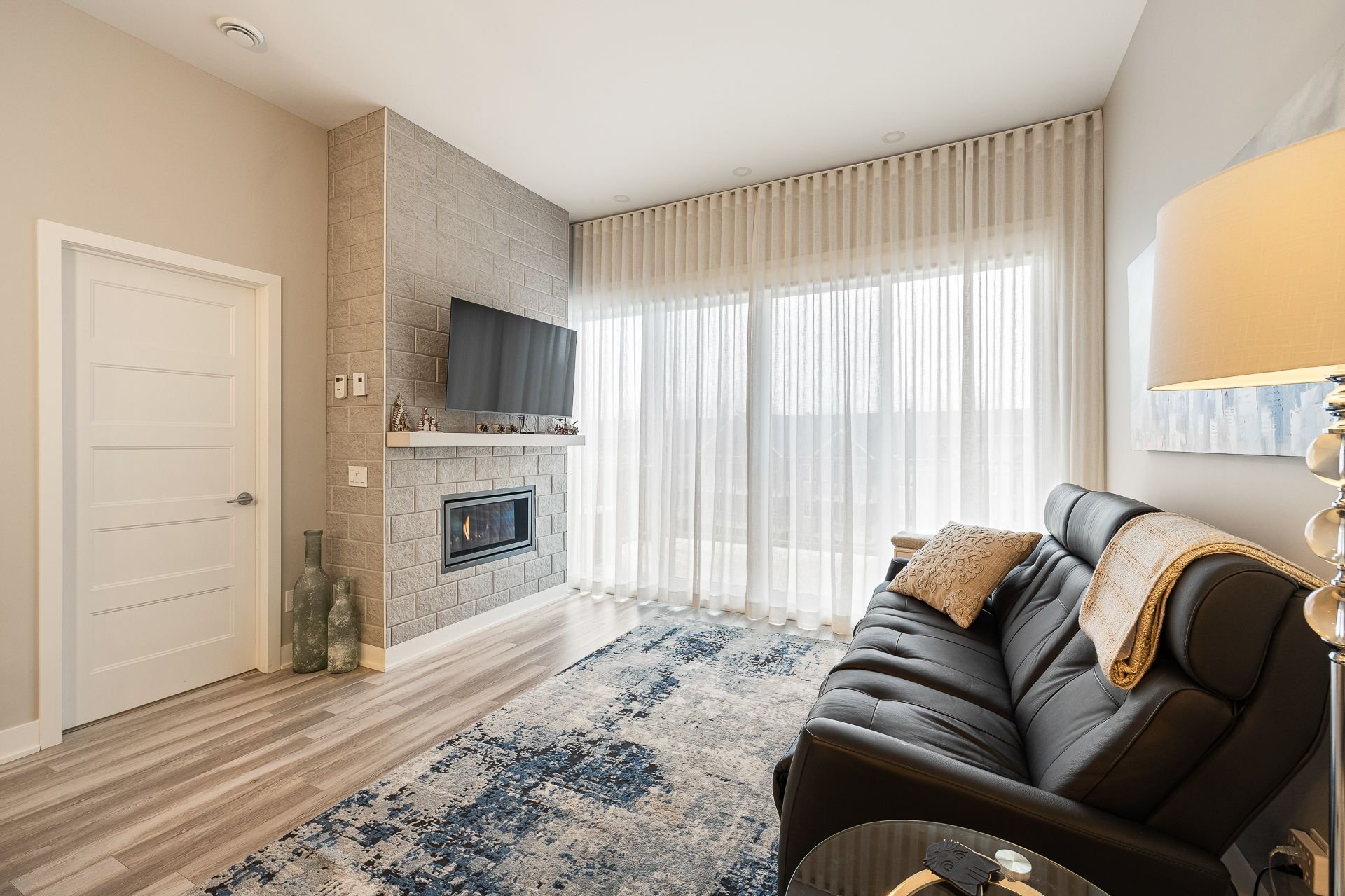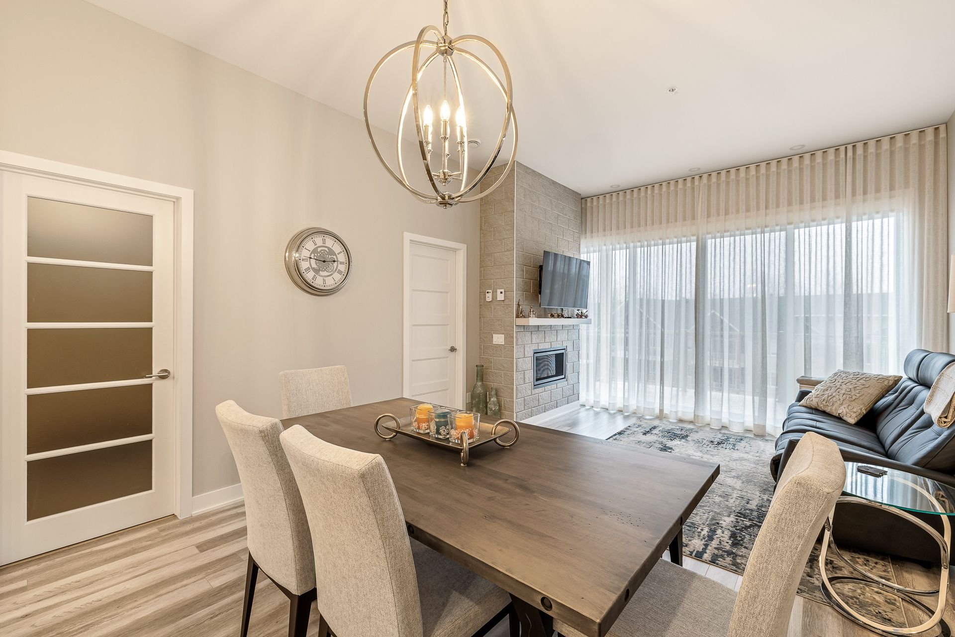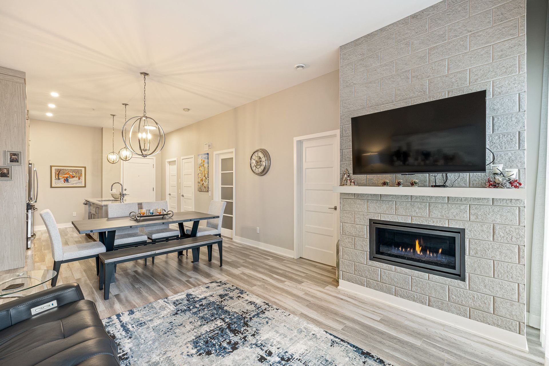Le foyer au gaz ajoute une touche chaleureuse et conviviale