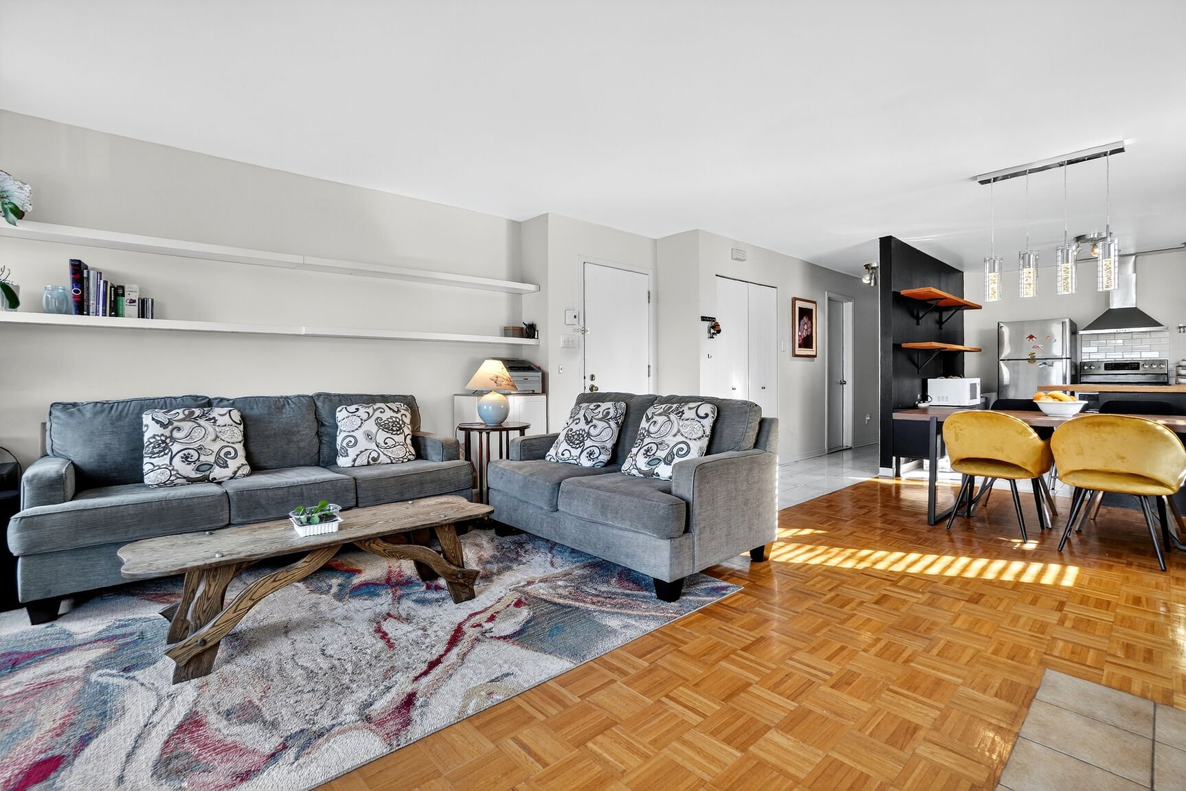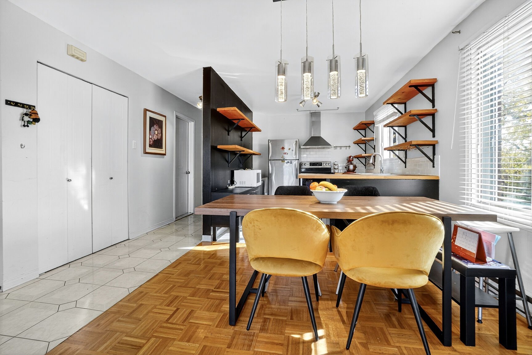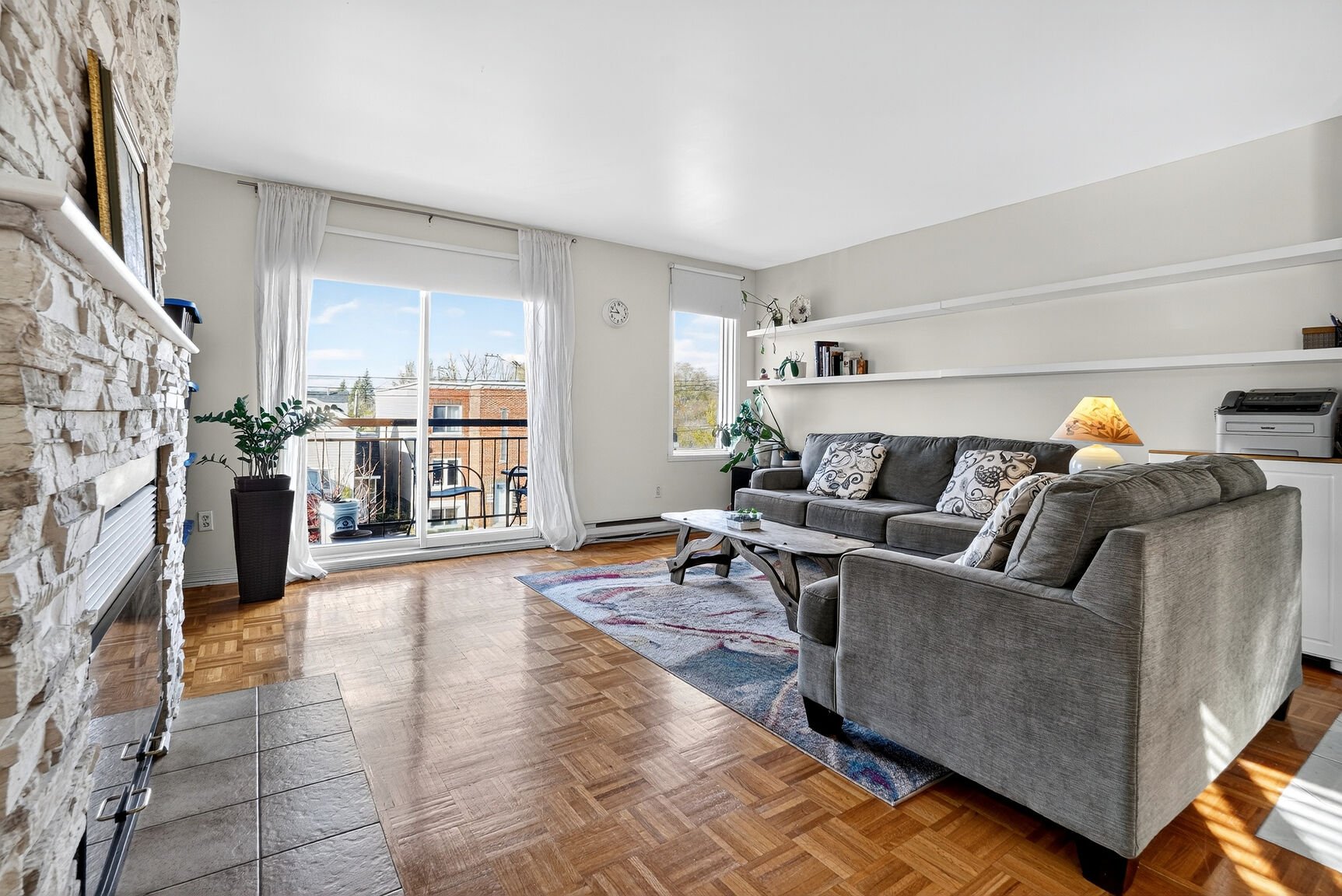 Spacious 4½ condo located on the 2nd floor, offering a bright open-concept living area, a bistro-style kitchen, and a cozy living room with a wood-burning fireplace in a brick surround. Bathroom with laundry area, hardwood and ceramic tile flooring. Enjoy 2 parking spaces (garage and driveway), front and back balconies, and a fenced yard. Prime location near Angrignon Park, Place LaSalle, schools, and Cégep André-Laurendeau. Quick access to downtown, highways, and public transportation.