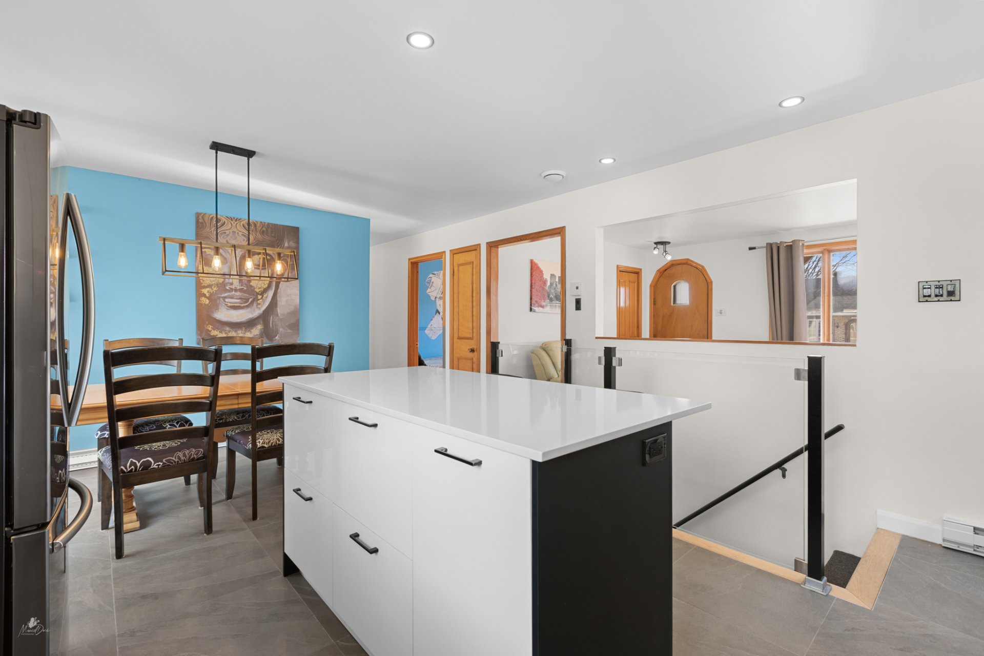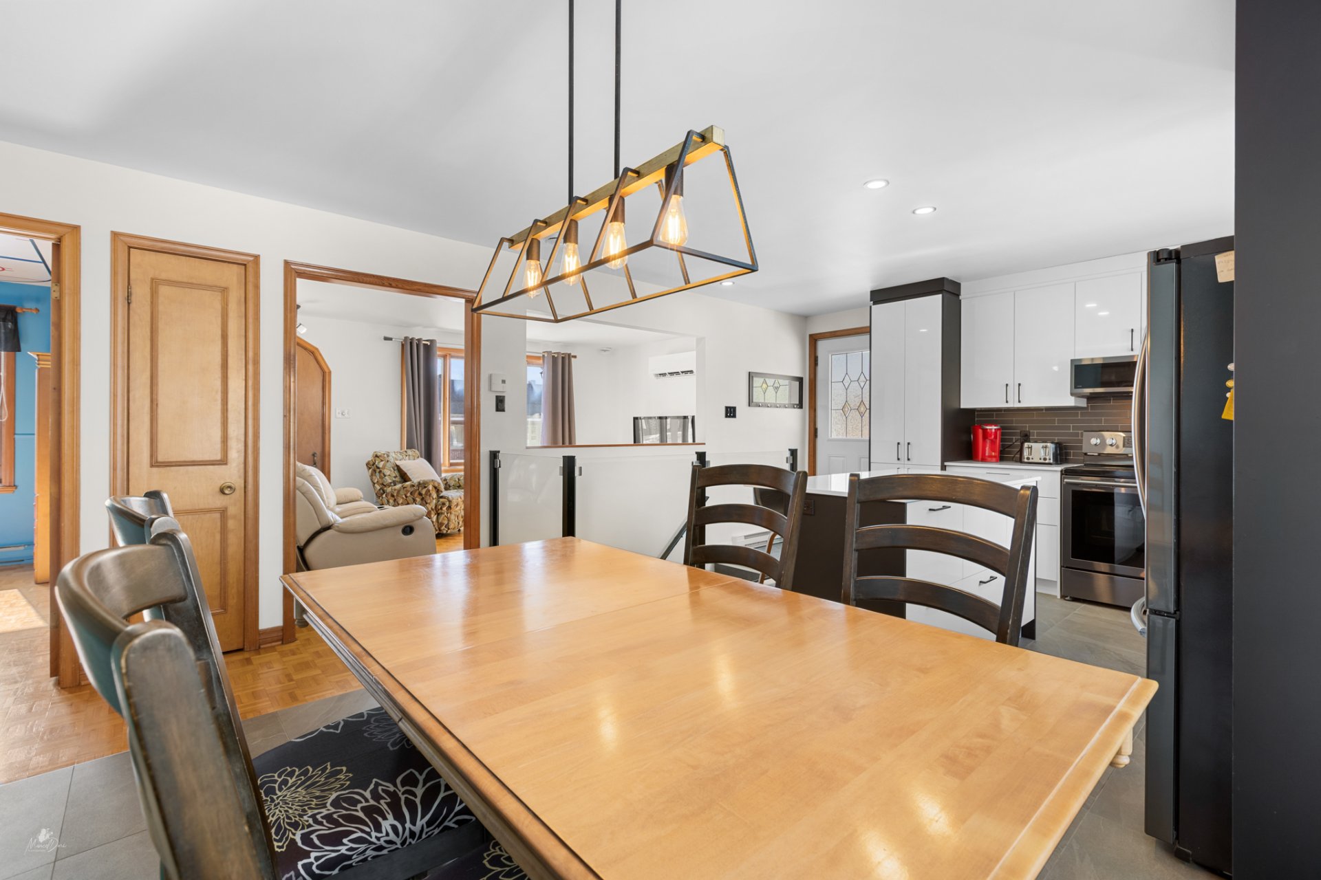 sur une salle à manger accueillante et une cuisine moderne