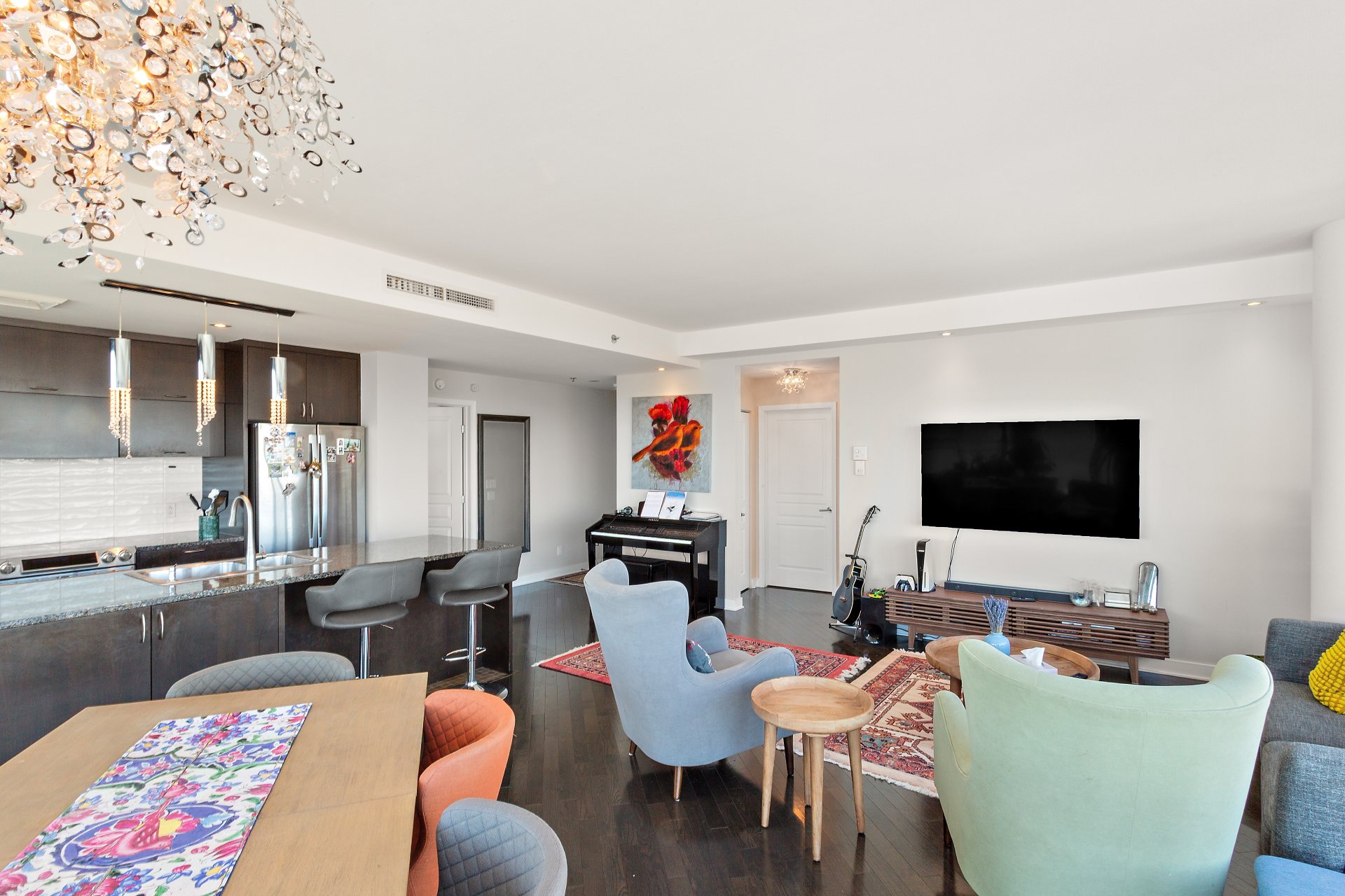 Le Vistal I - venez découvrir cette incroyable unité de coin des plus privées, perchée dans le ciel, offrant des vues sur le centre-ville de Montréal, l'Île-des-Soeurs et le fleuve Saint-Laurent. Les fenêtres pleine hauteur sont tout simplement impressionnantes. Le design est moderne et la construction est réalisée avec des matériaux de grande qualité. Tout a été pensé pour assurer un confort absolu. Immeuble certifié LEED, avec des aires communes de rêve, incluant une salle d'exercice, une piscine intérieure et extérieure, une salle communautaire et sécurité 24/7. 2 garages sont inclus. Un locataire occupe l'unité jusqu'au 30 juin 2027
