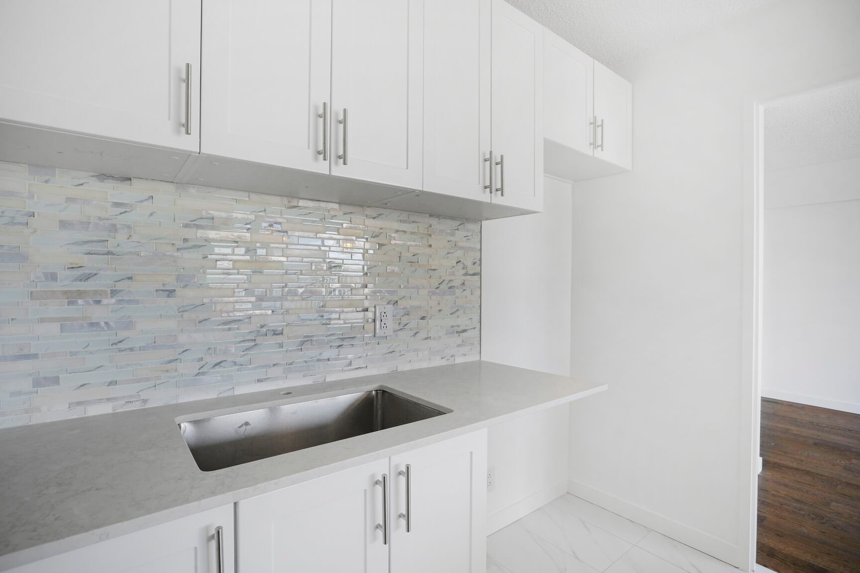 comptoir en marbre et éclairage encastré