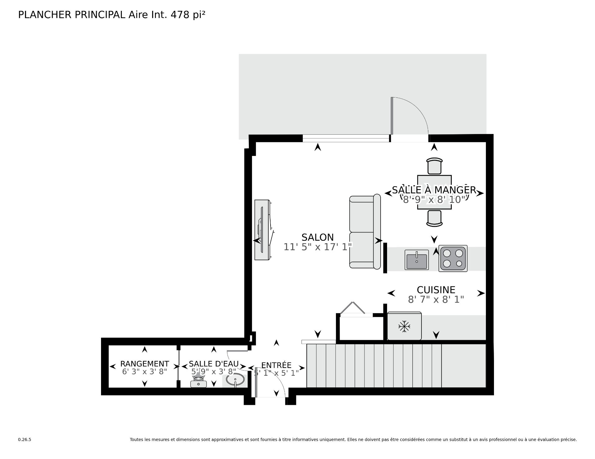 * Aire ouverte lumineuse regroupant entrée avec garde-robe,