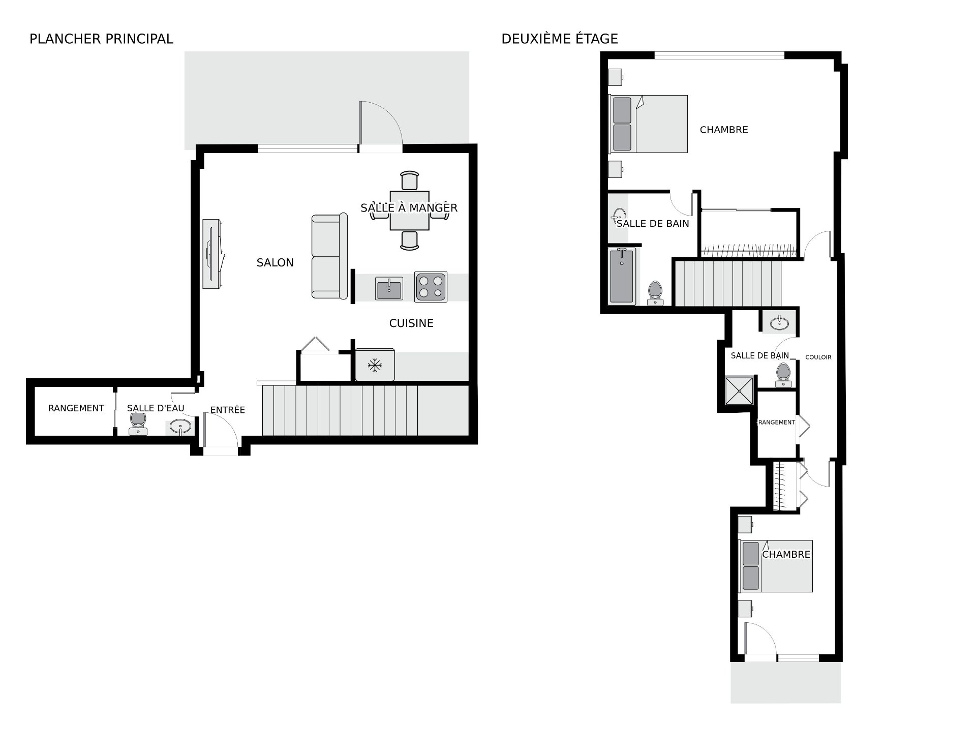 *Entrée sur le 3e étage et chambres à l'étage supérieur.