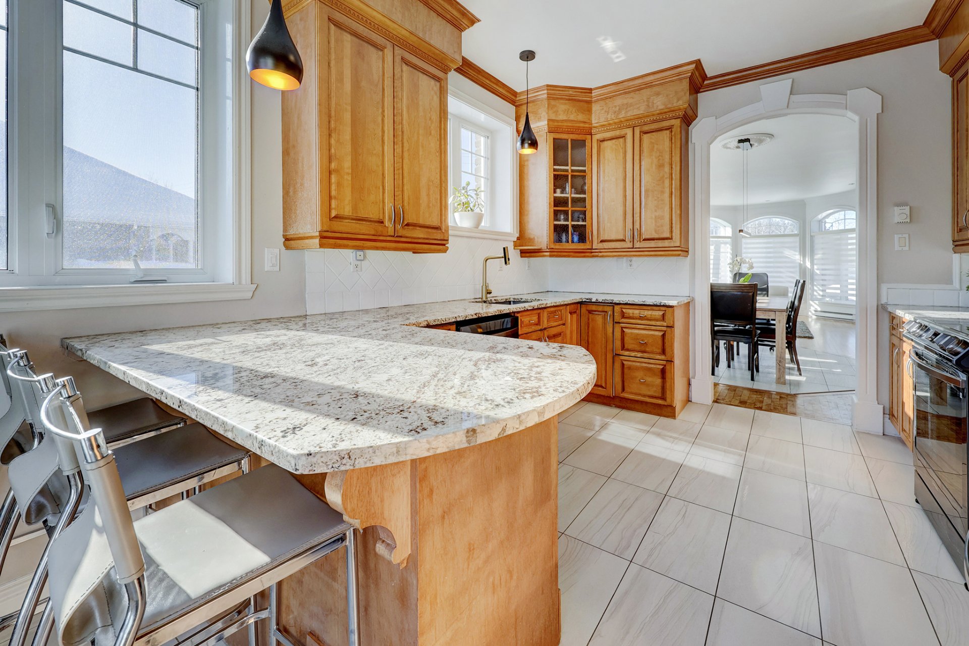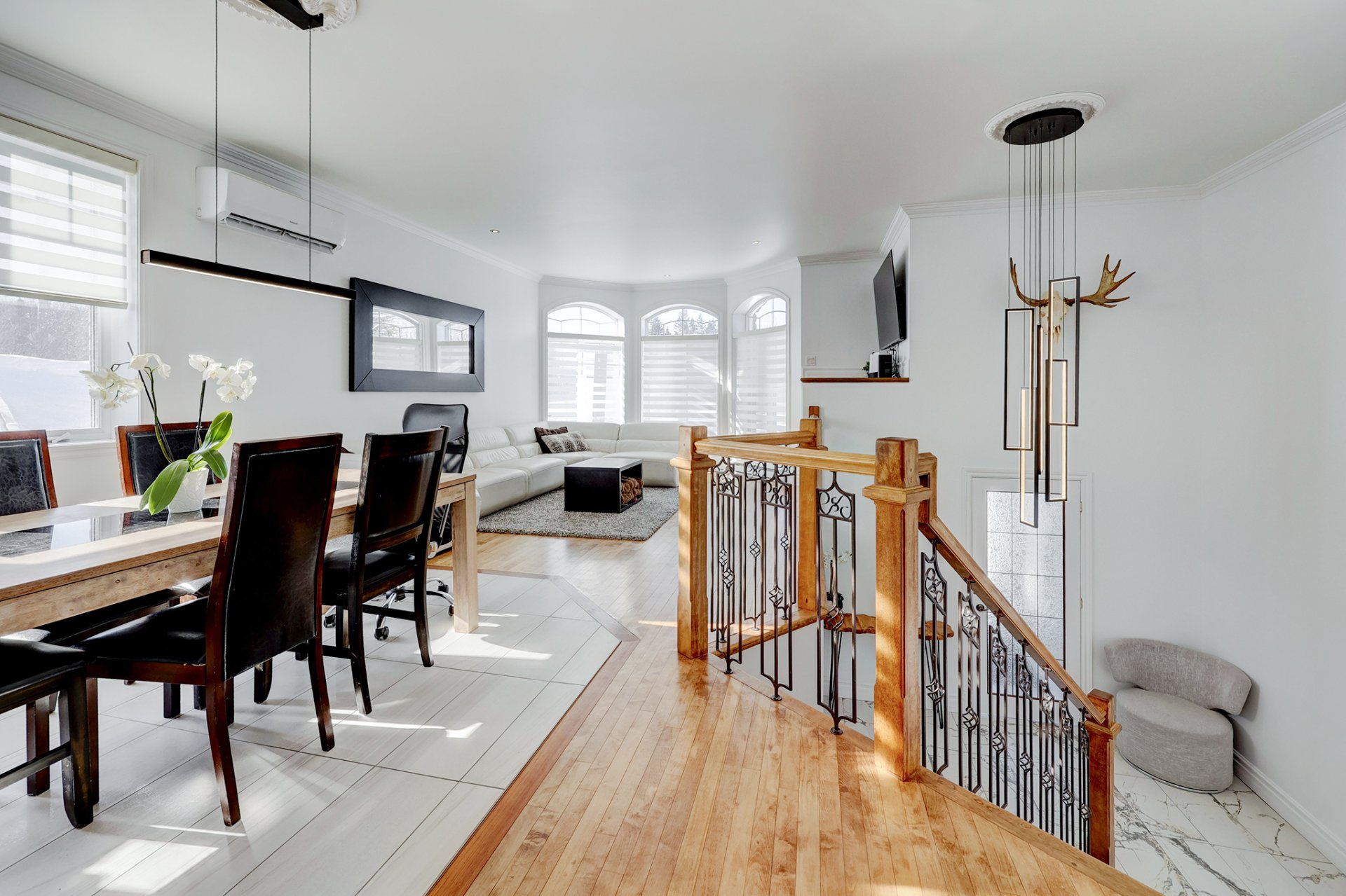 des plafonds de 9 pieds au rez-de-chaussée et une