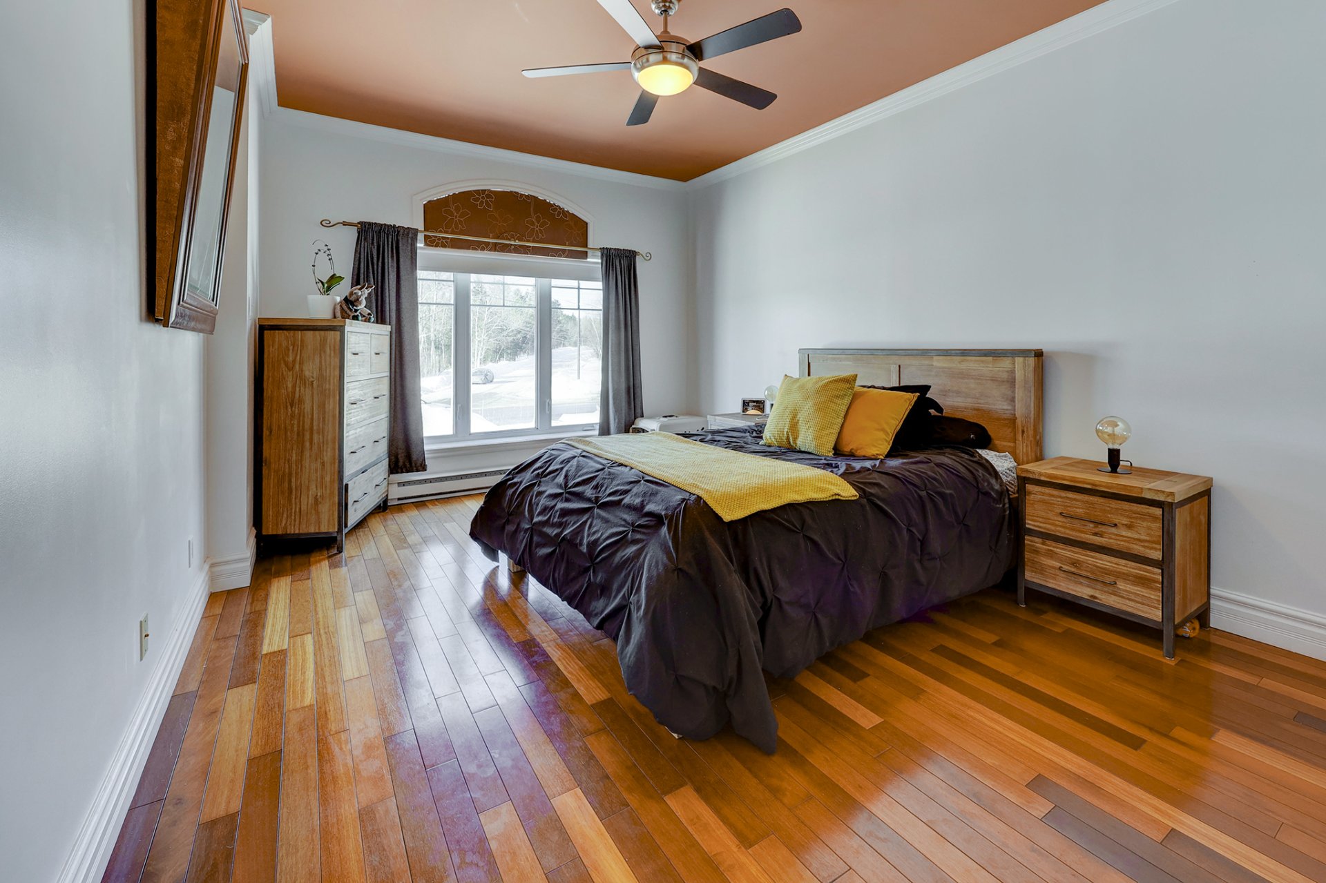 bois, donnant sur une magnifique vue de la cour arrière.