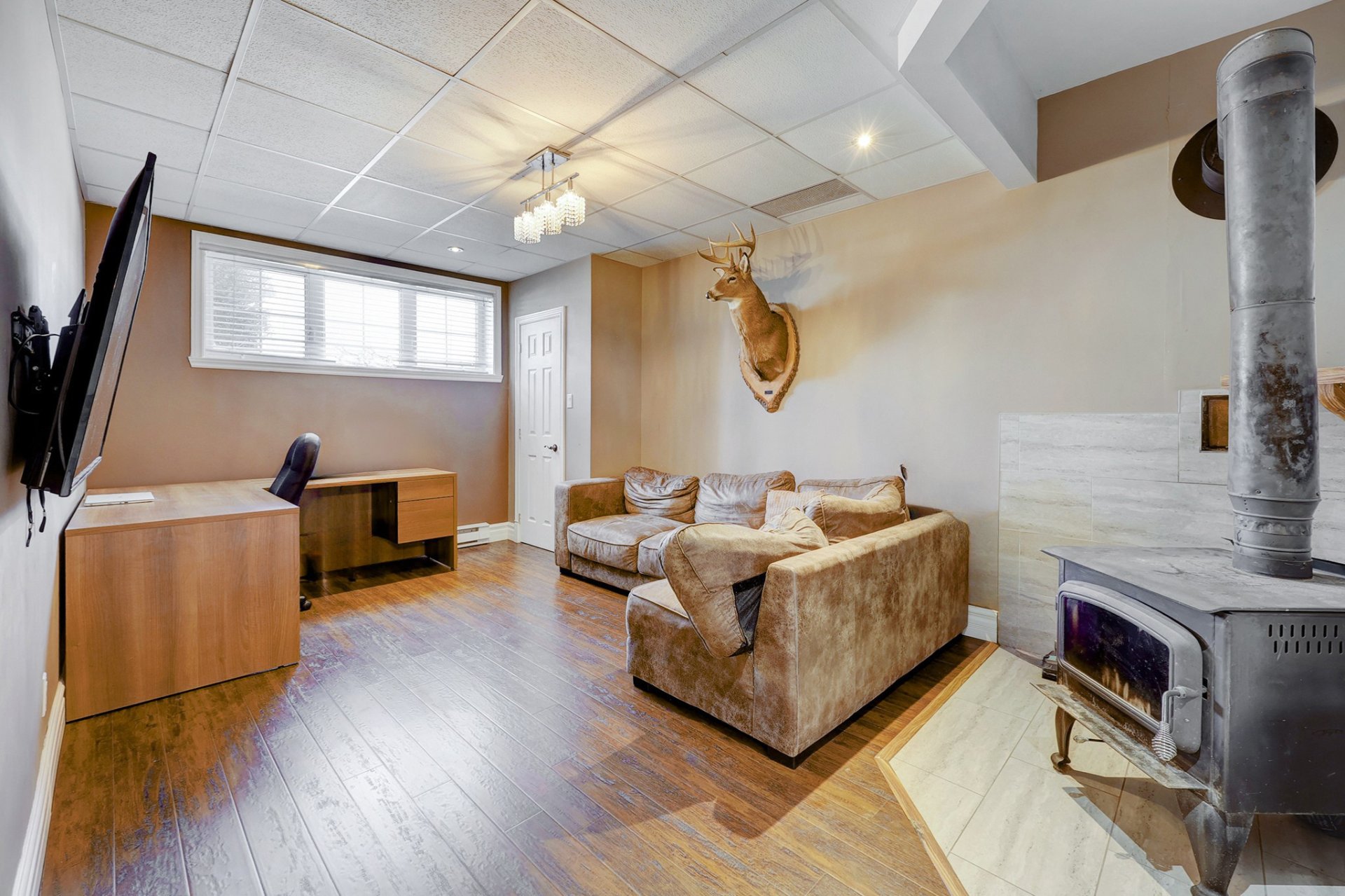 Le sous-sol impressionne avec ses plafonds de 9 pieds et