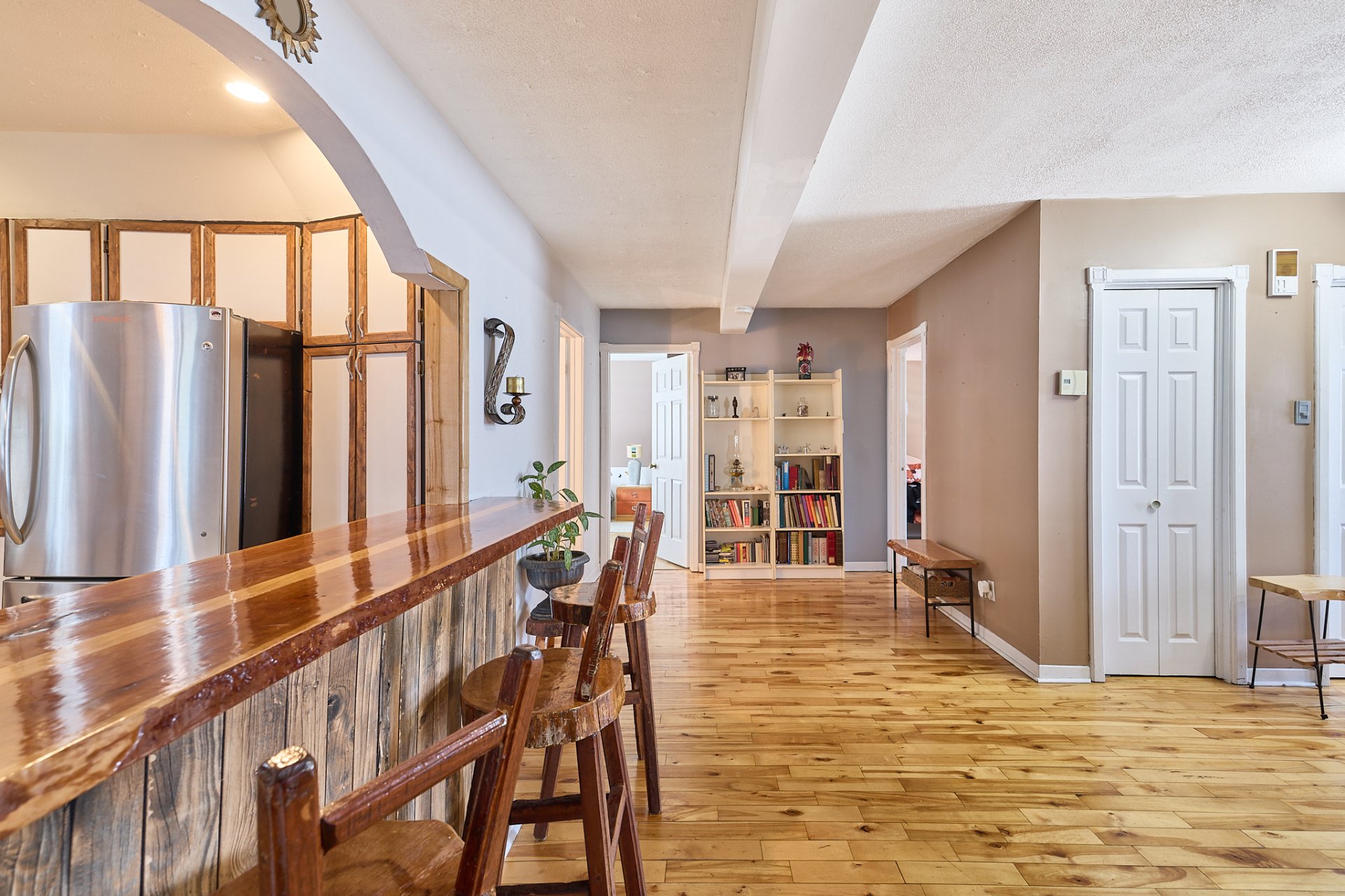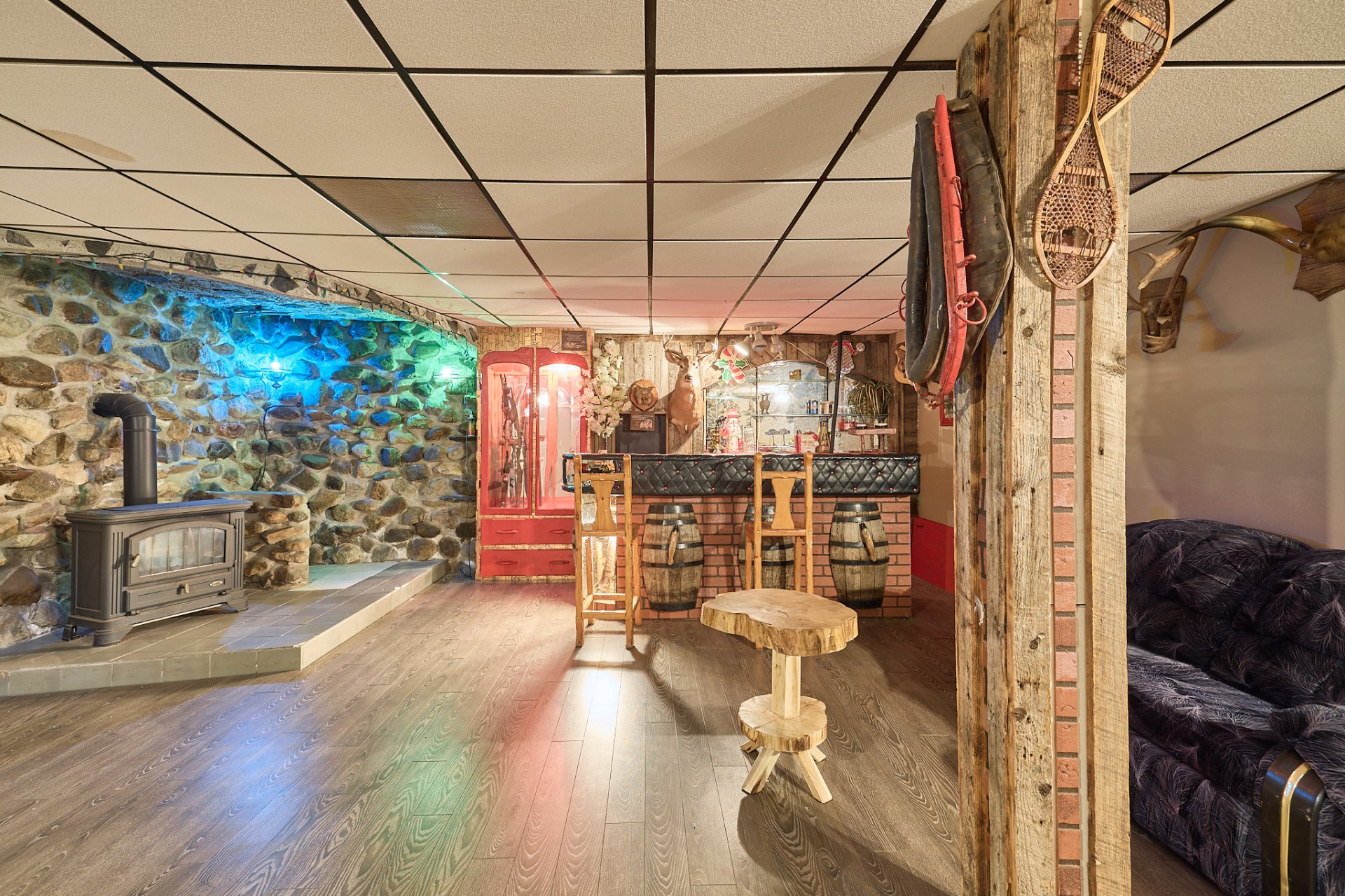 Droit d'accès notarié au Lac Beaulac! Située sur un terrain de plus de 21 250 pi², cette propriété au cachet unique avec façade en pierre offre un cadre de vie agréable et spacieux. Elle comprend 4 chambres à coucher, une véranda lumineuse idéale pour se détendre et un garage pratique. Les amateurs de plein air apprécieront sa proximité des sentiers de VTT et de motoneige, ainsi que des pistes de ski et de nombreuses autres activités. Une belle opportunité pour profiter de l'espace, du confort et de la nature.