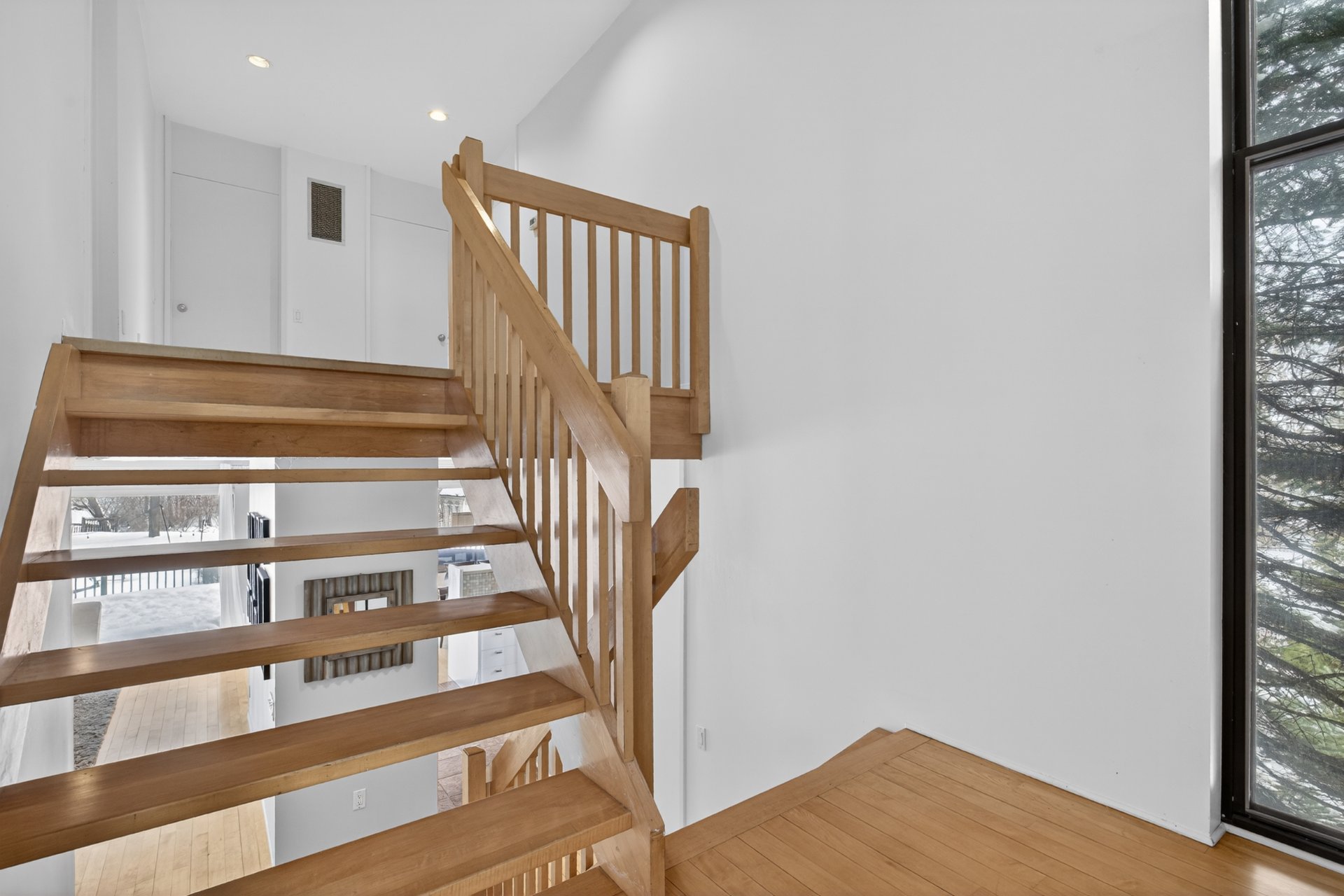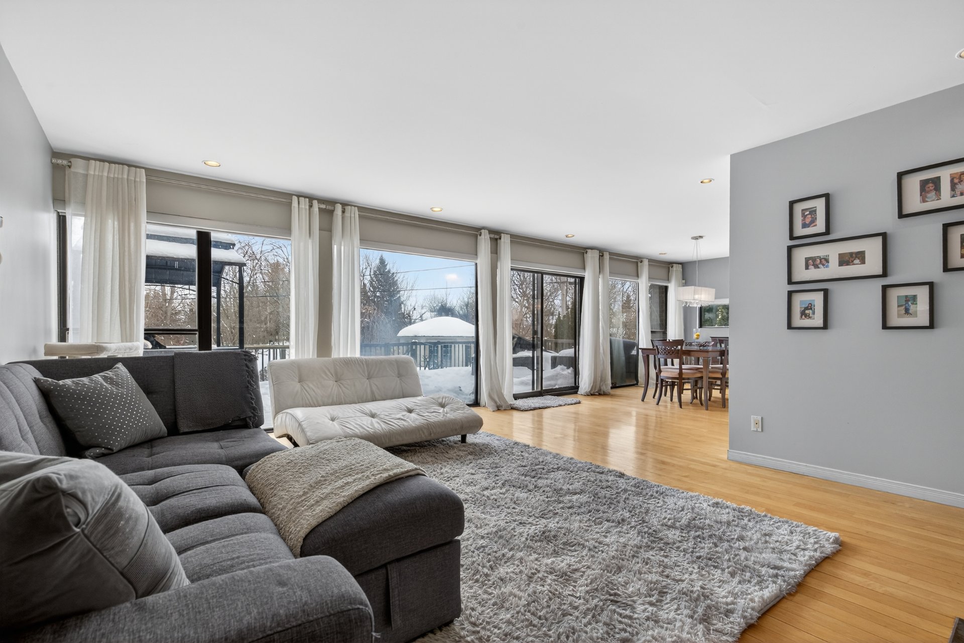De vastes fenêtres pleine hauteur, mur à mur, dans chaque
