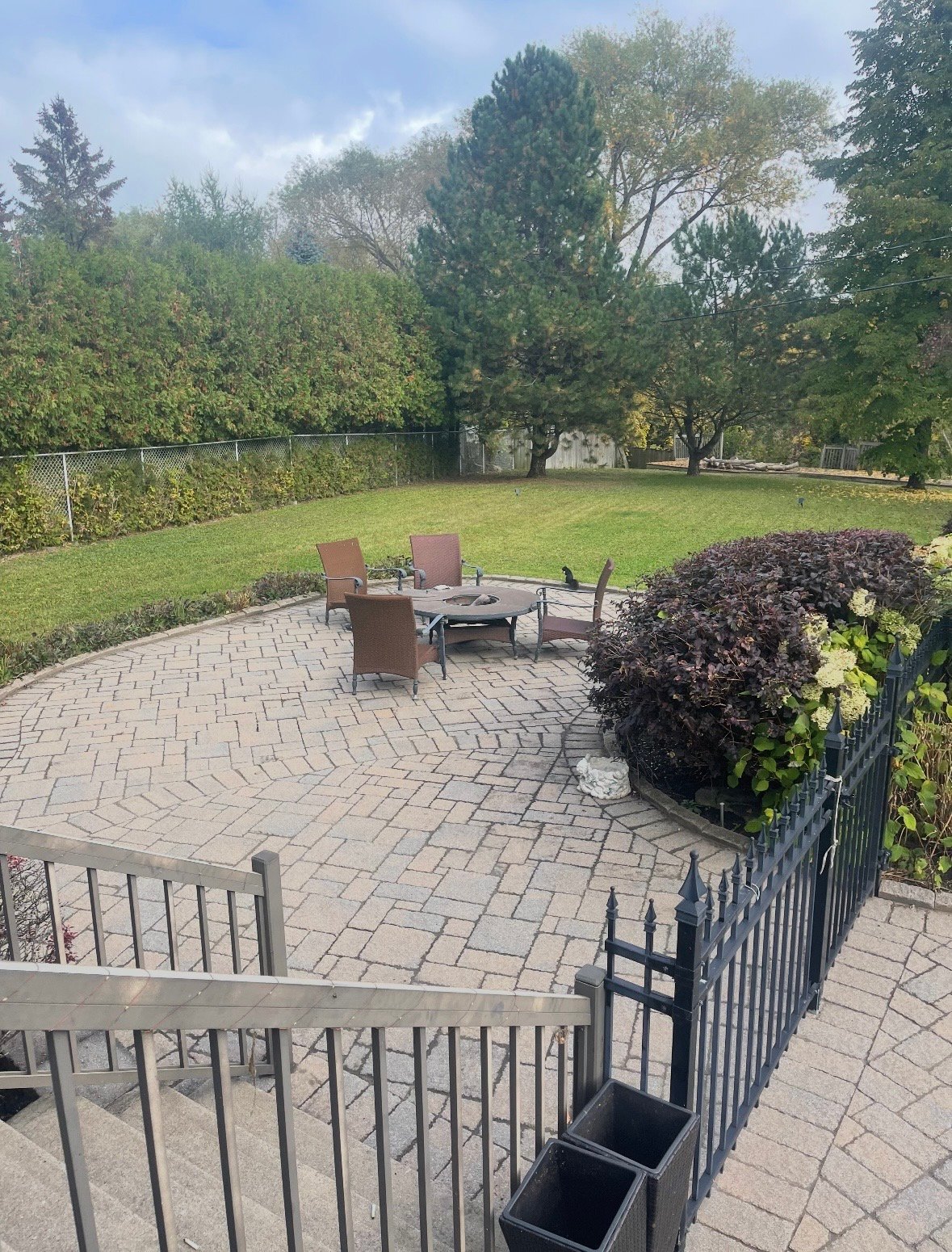 - Une terrasse pavée avec foyer extérieur, parfaite pour