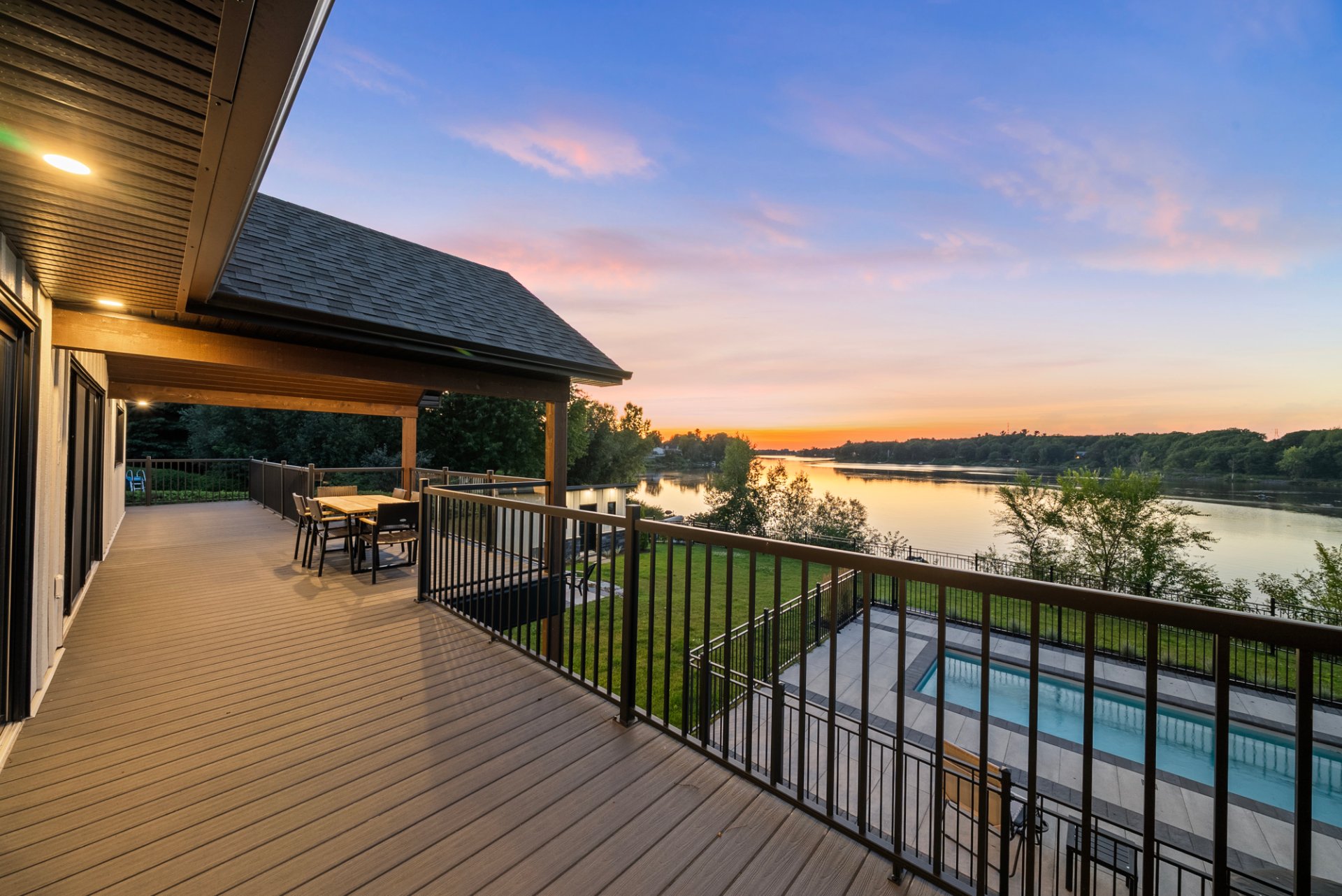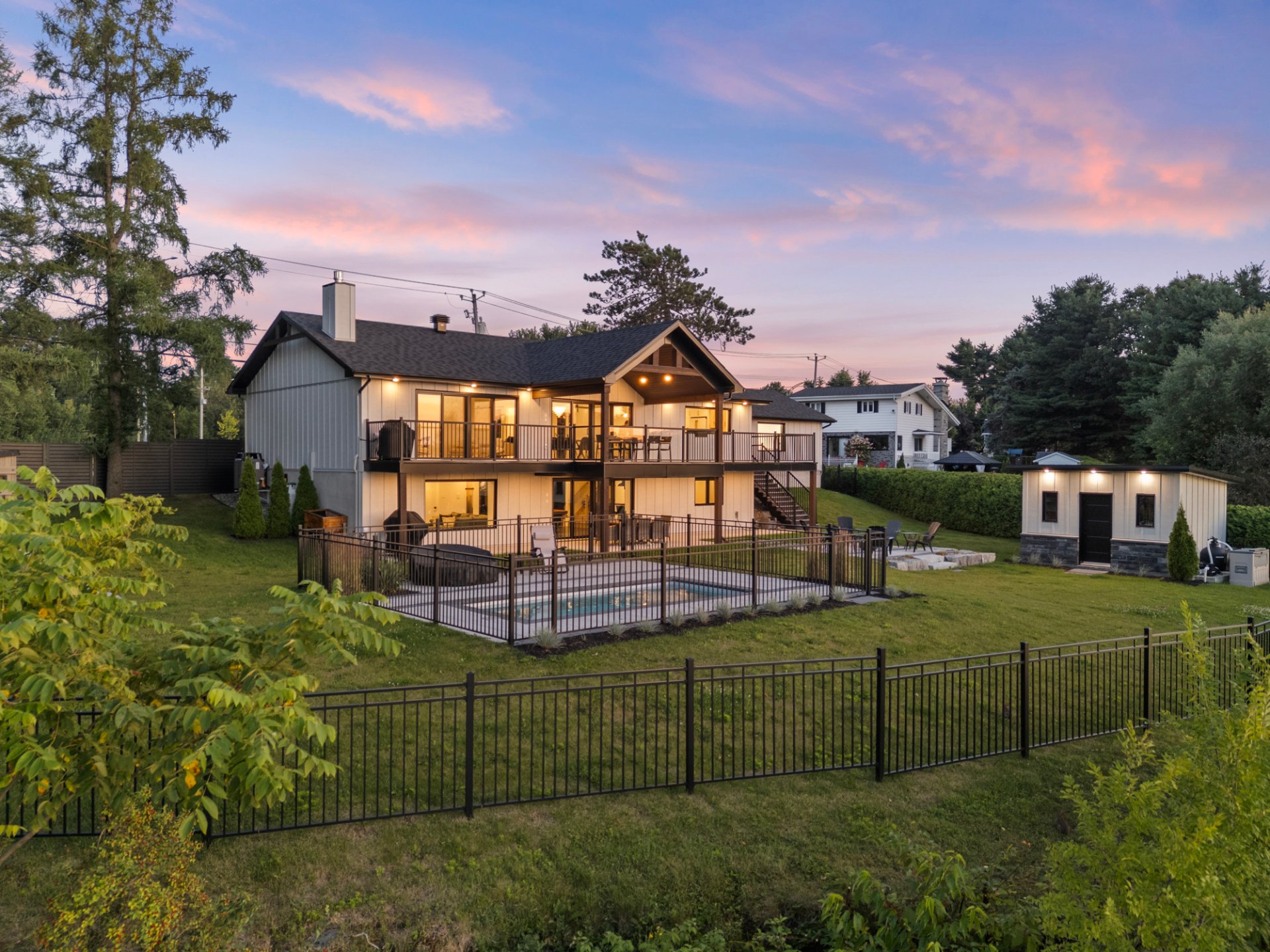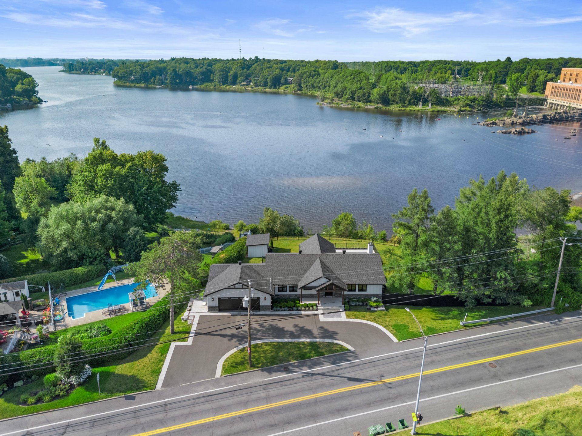 Prestigieuse propriété entièrement rénovée avec vue panoramique sur la rivière! À l'intérieur, aire ouverte baignée de lumière, cuisine haut de gamme, salon avec foyer et accès à une terrasse couverte. Trois chambres, salle de bain luxueuse et walk-in. Au sous-sol : salle familiale, bar, bureau vitré et salle de jeux. Cour aménagée avec piscine creusée, coin feu et remise. Garage double impeccable. Une résidence clé en main offrant espace, style et confort exceptionnel. À visiter sans tarder!