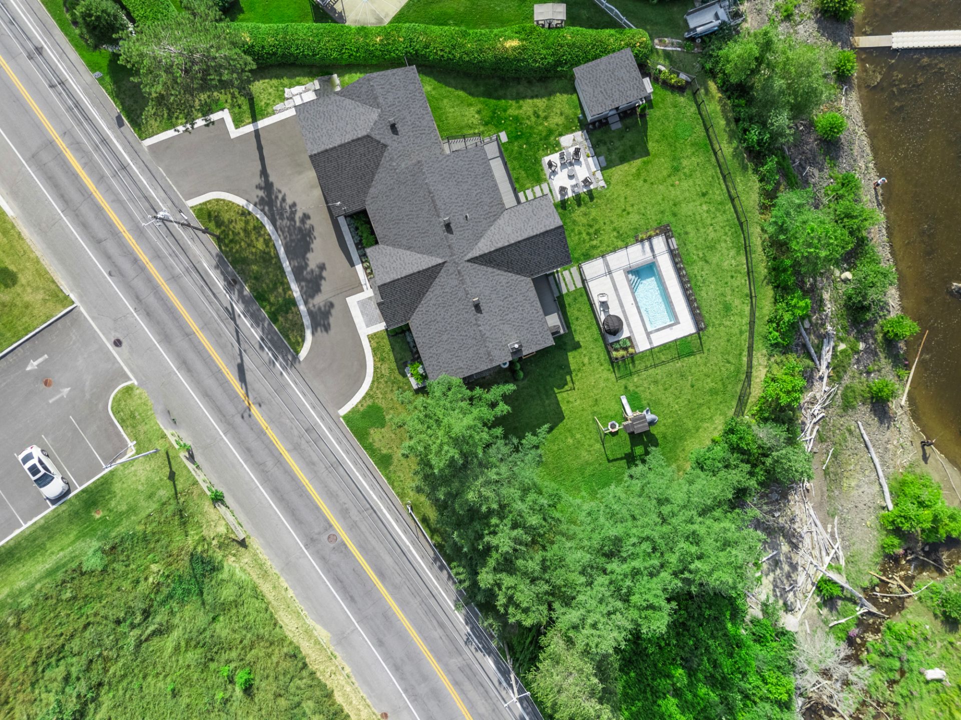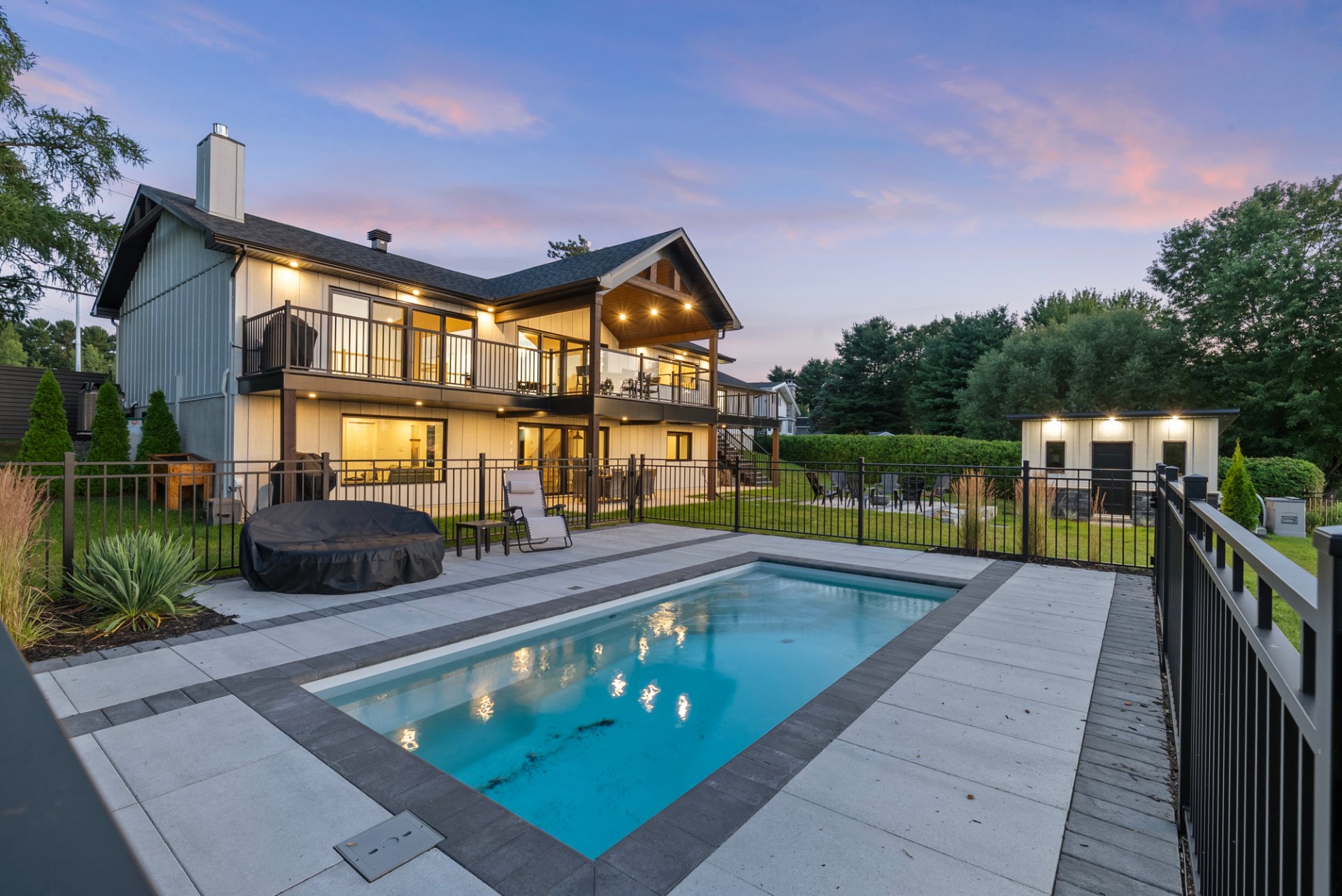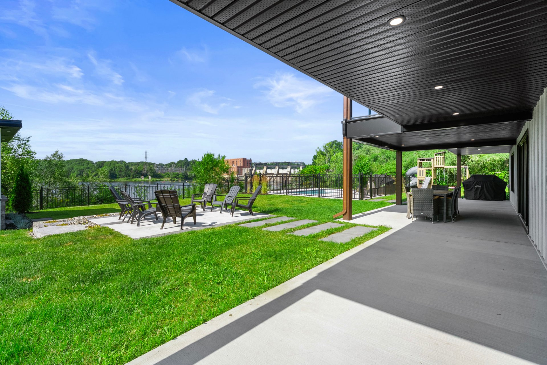 Prestigieuse propriété entièrement rénovée avec vue panoramique sur la rivière! À l'intérieur, aire ouverte baignée de lumière, cuisine haut de gamme, salon avec foyer et accès à une terrasse couverte. Trois chambres, salle de bain luxueuse et walk-in. Au sous-sol : salle familiale, bar, bureau vitré et salle de jeux. Cour aménagée avec piscine creusée, coin feu et remise. Garage double impeccable. Une résidence clé en main offrant espace, style et confort exceptionnel. À visiter sans tarder!