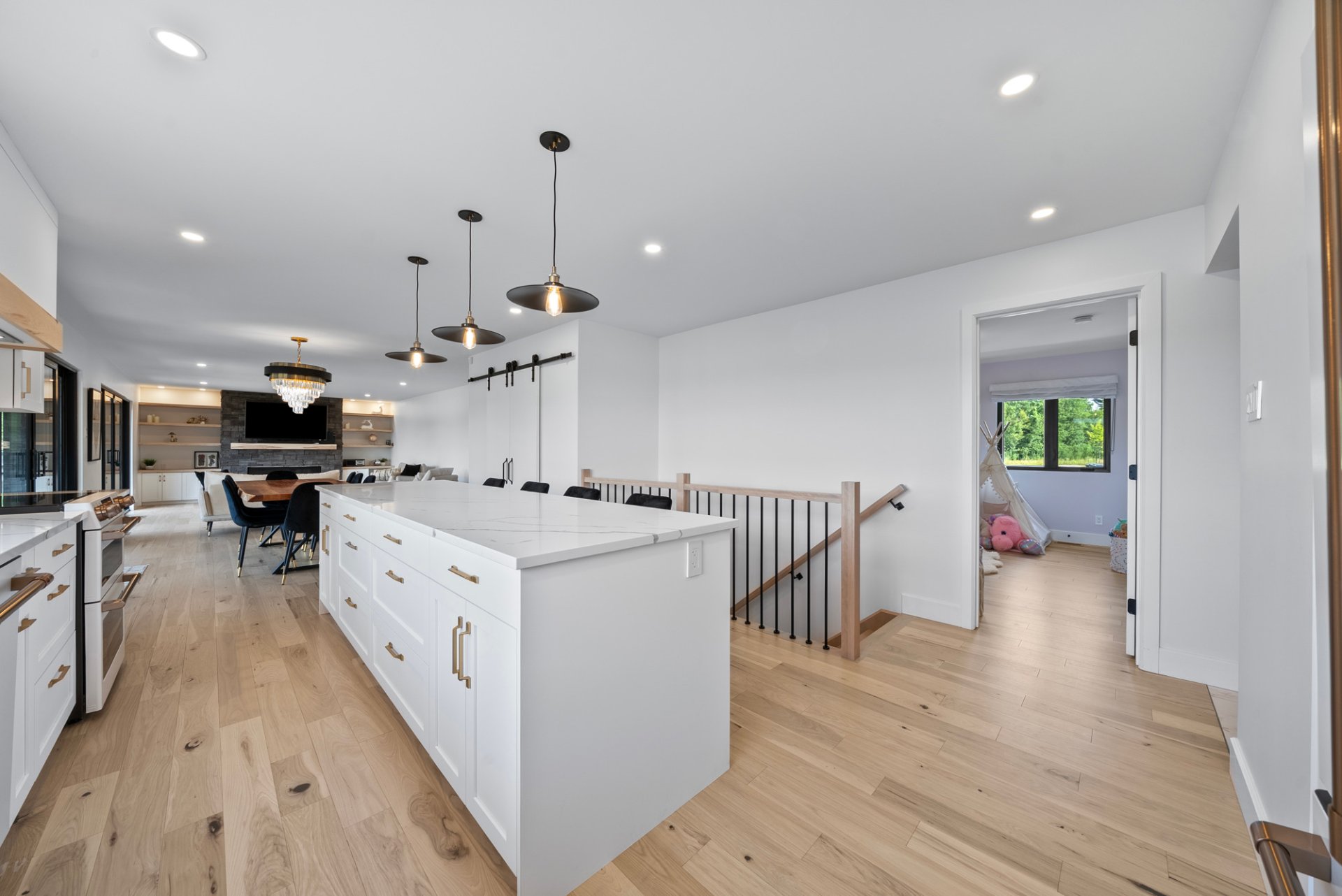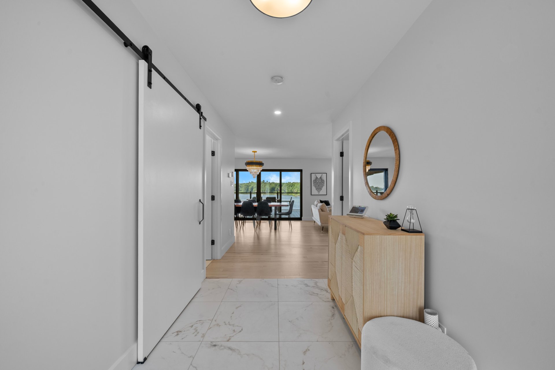 un hall spacieux et une aire de vie à aire ouverte baignée