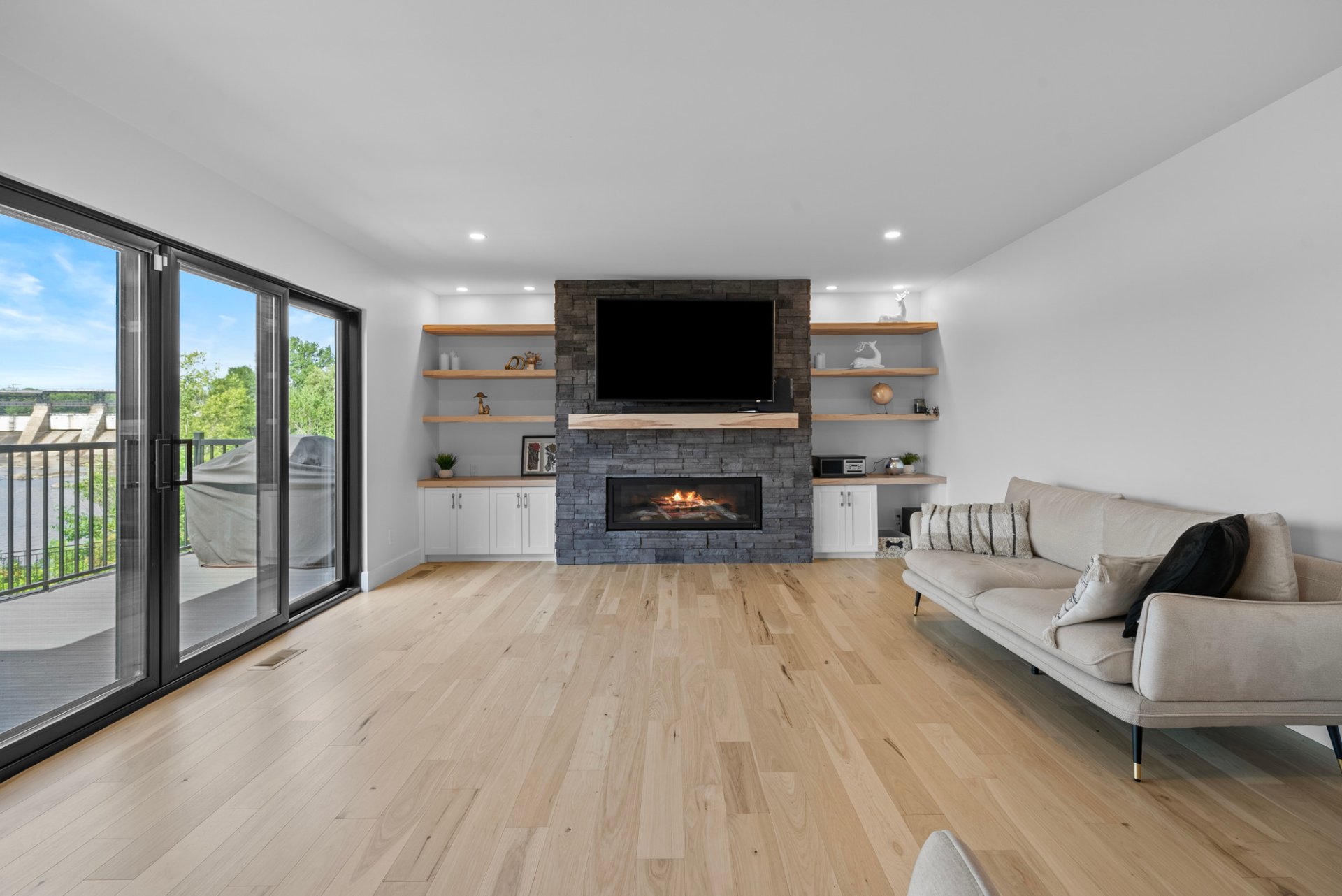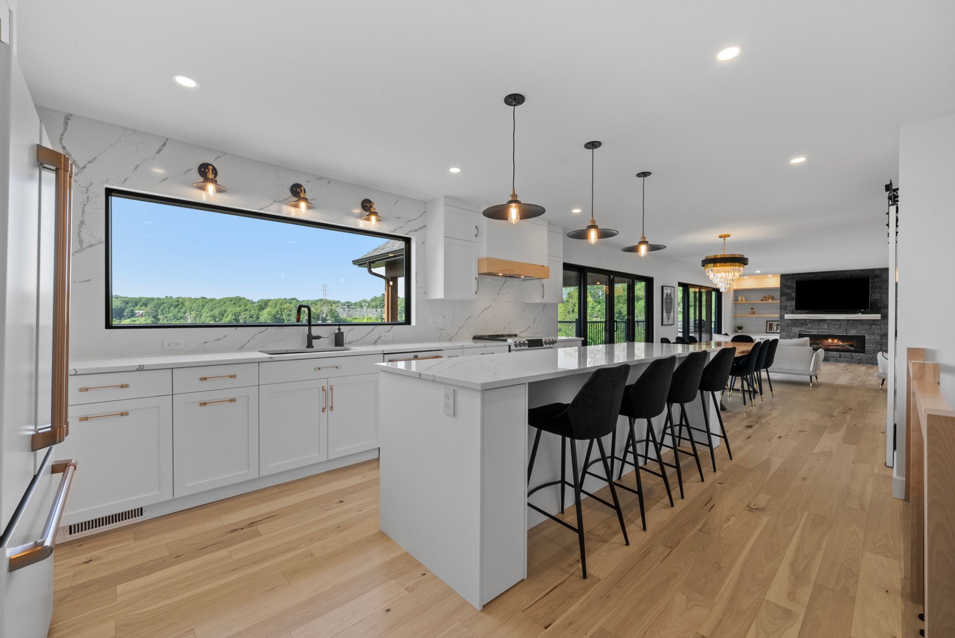 de lumière naturelle. Le salon, avec son foyer élégant,