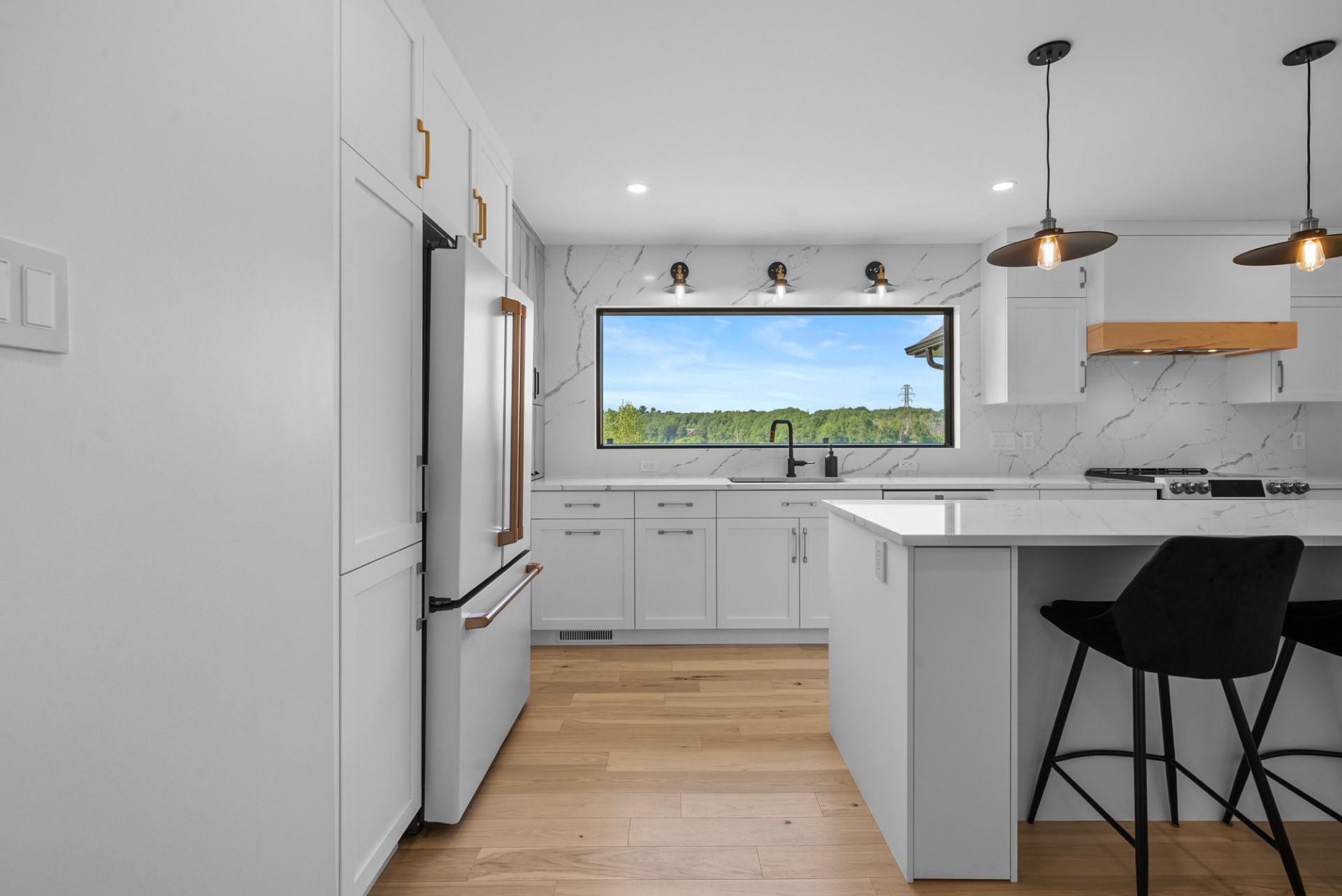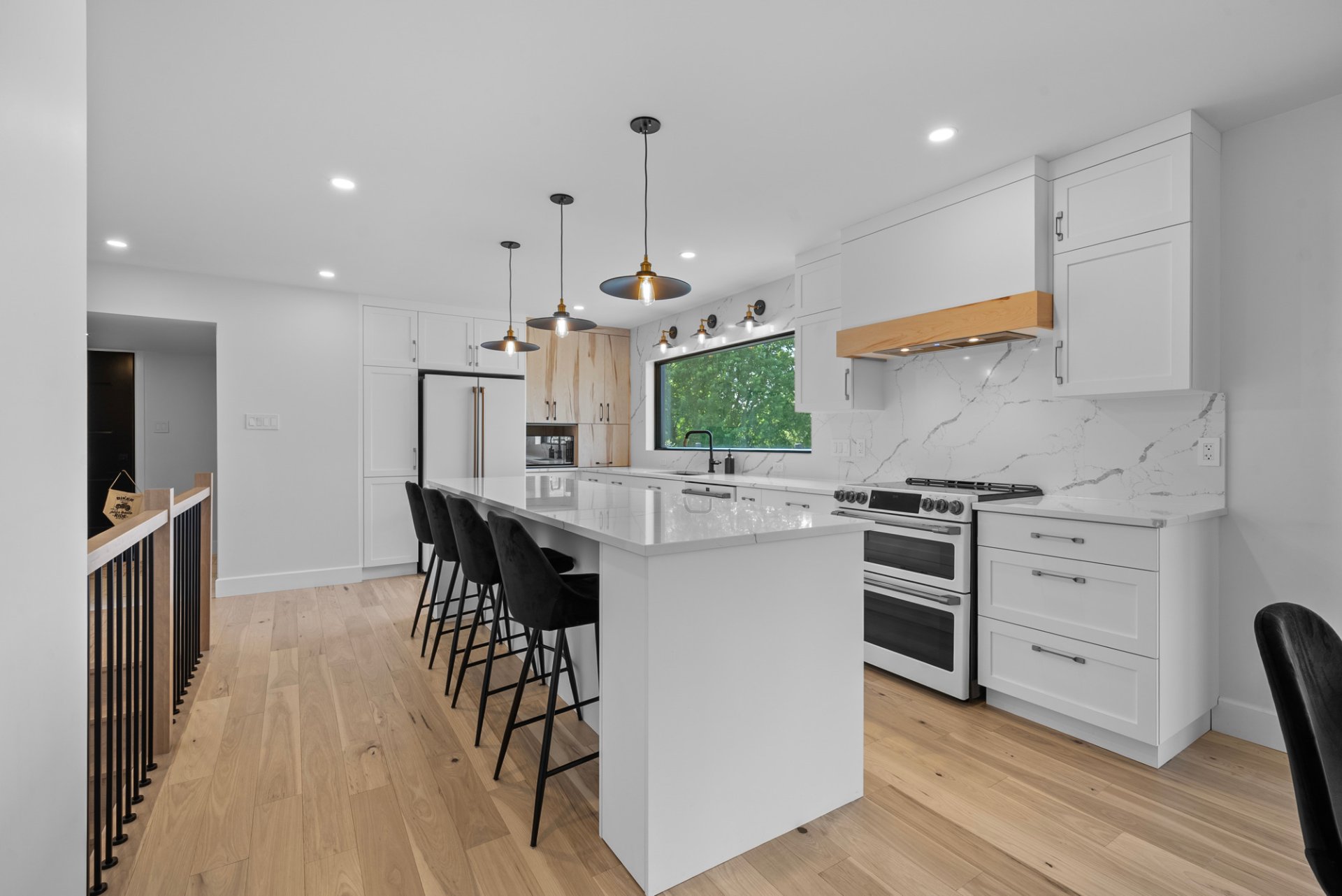 épuré et moderne, propose un grand îlot central, un espace