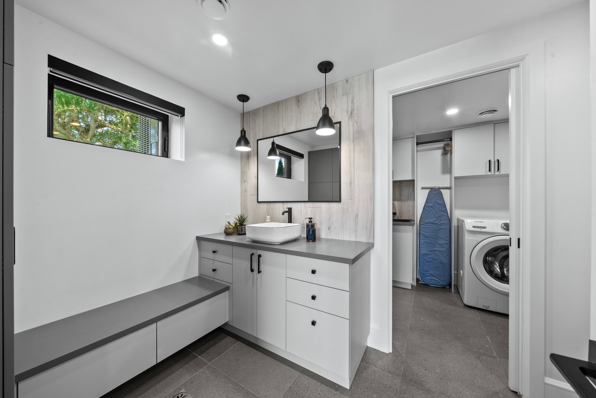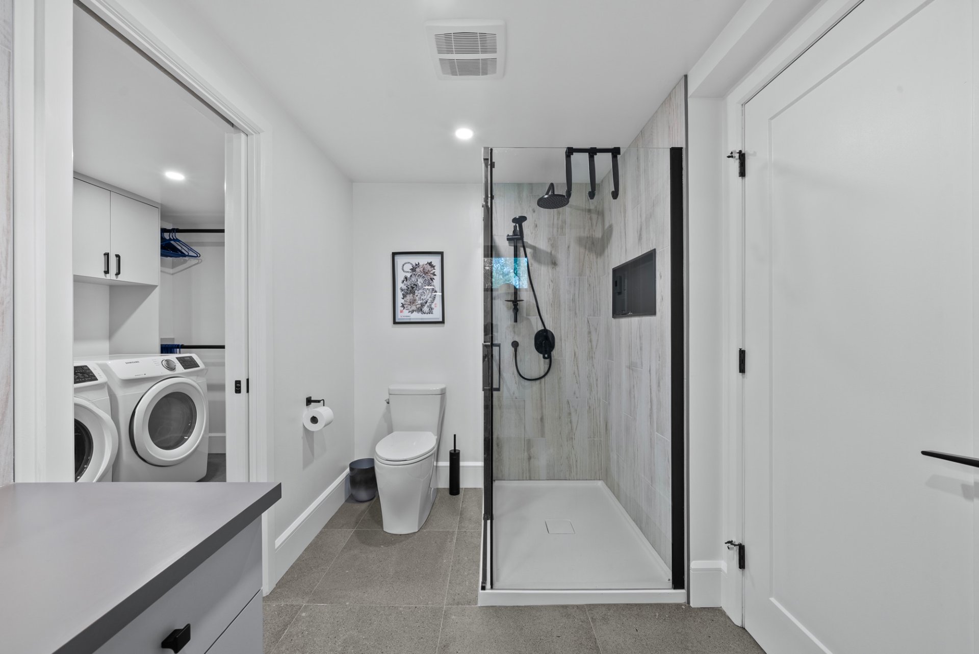 et salle de bain complète avec salle de lavage