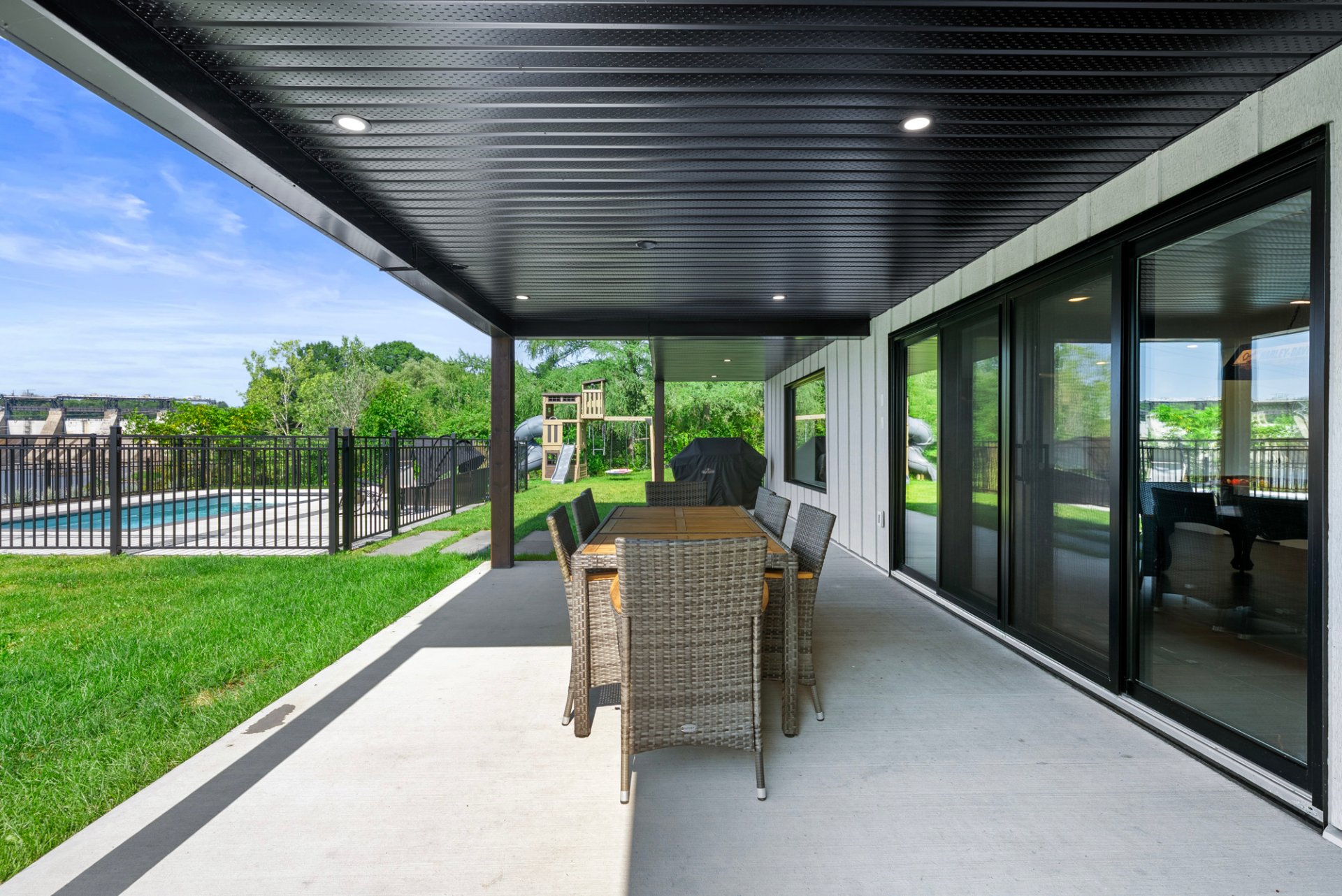 s'ouvre sur une vaste terrasse couverte où les couchers de