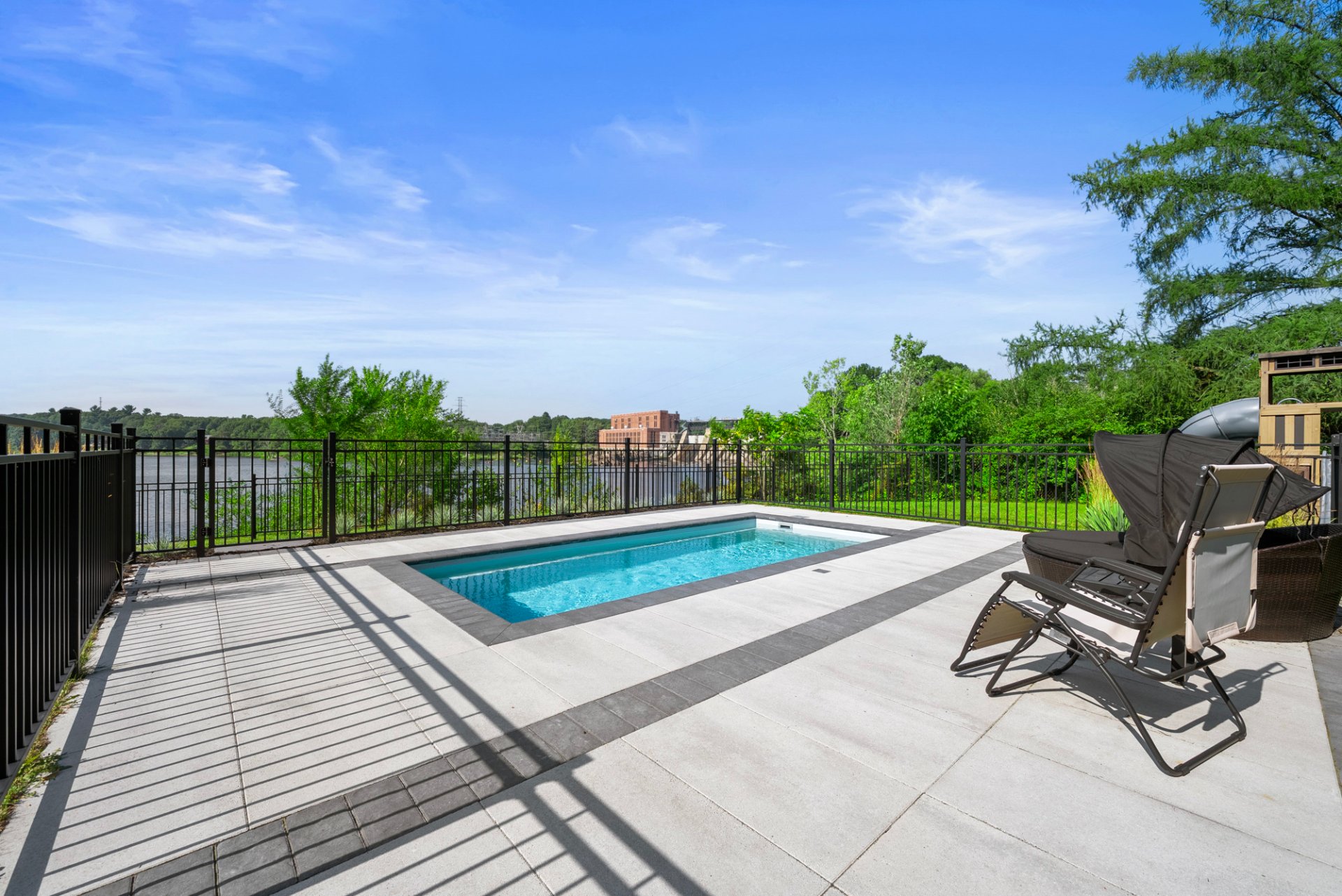 piscine creusée chauffée avec vue sur l'eau, grande