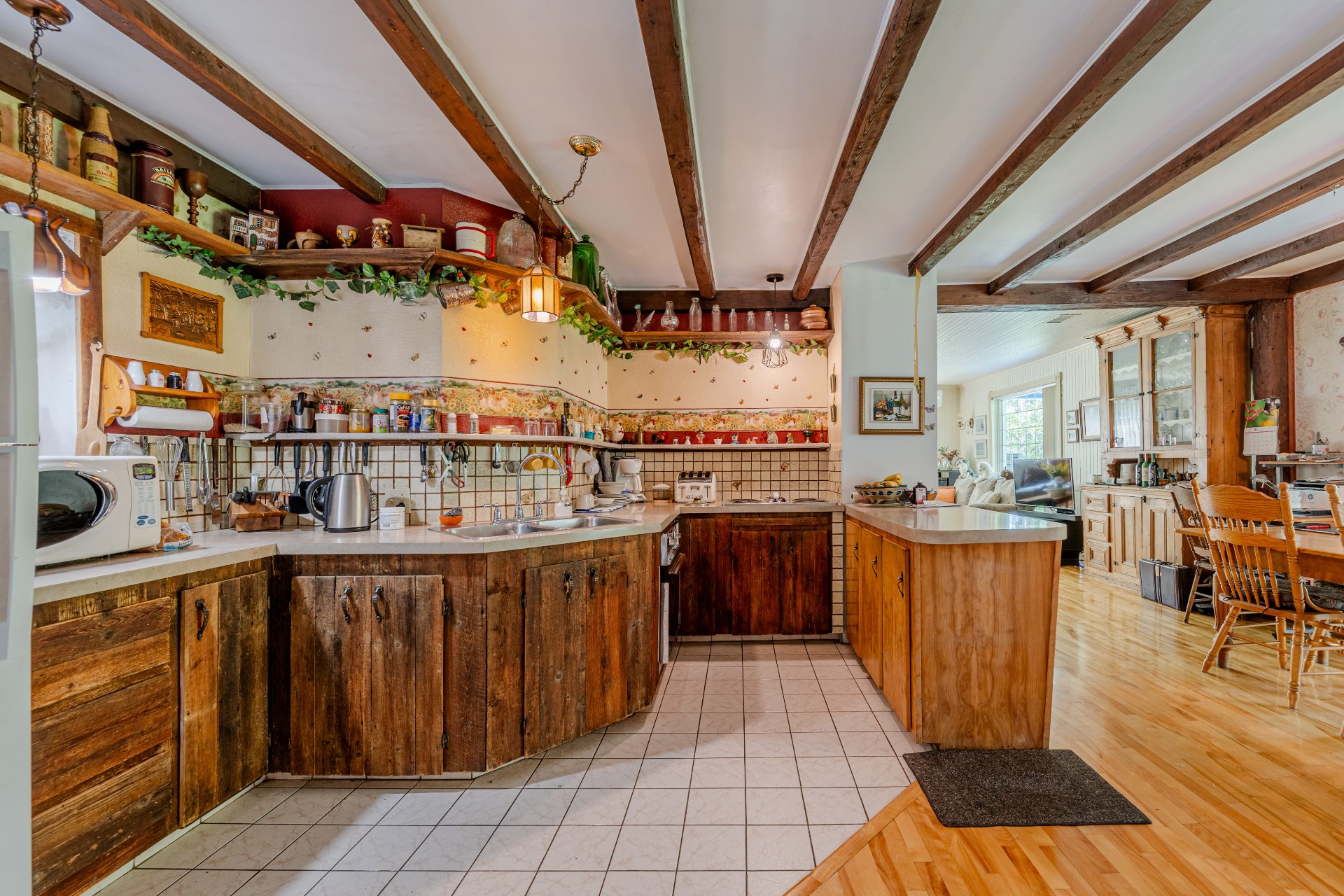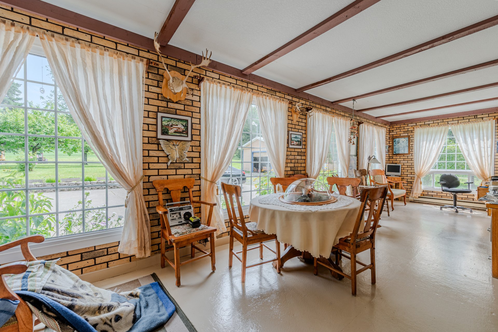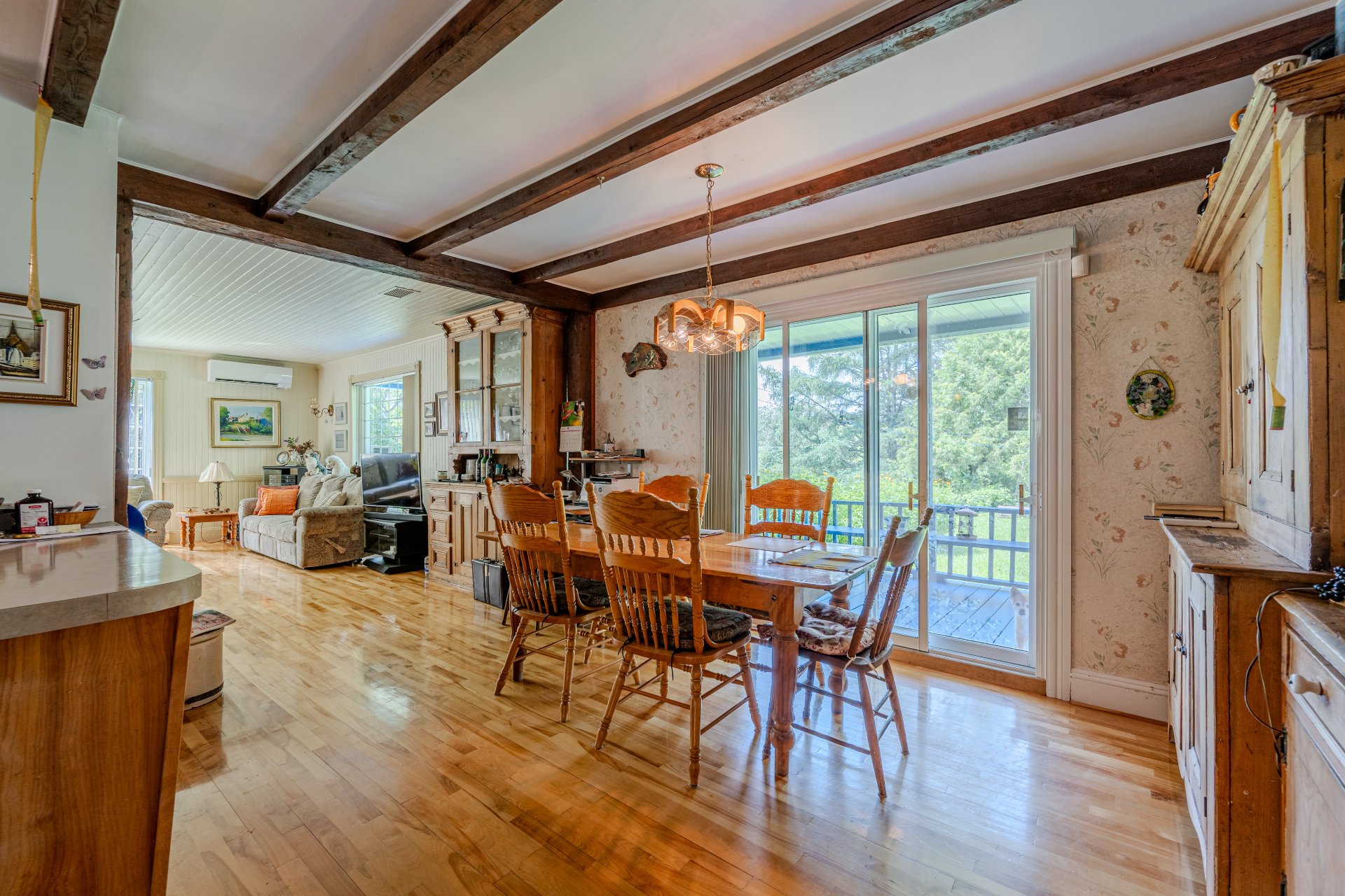 Domaine chaleureux à Sainte-Angèle-de-Mérici! Spacieuse propriété de 4 chambres à coucher et 2 salles de bain complètes, offrant un intérieur soigné et bien entretenu. Planchers de bois d'origine, poutres apparentes, grande cuisine rustique et poêle Bélanger au salon créent une ambiance authentique et conviviale. Idéal pour famille nombreuse ou projet d'accueil. Terrain paysager, galerie couverte, stationnement vaste. Un domaine au cachet unique, parfait pour vivre ou recevoir à la campagne!
