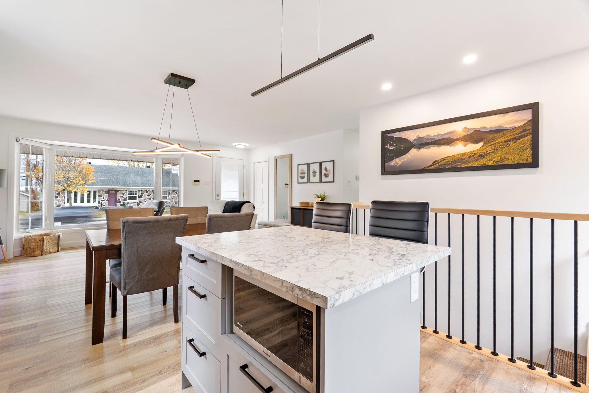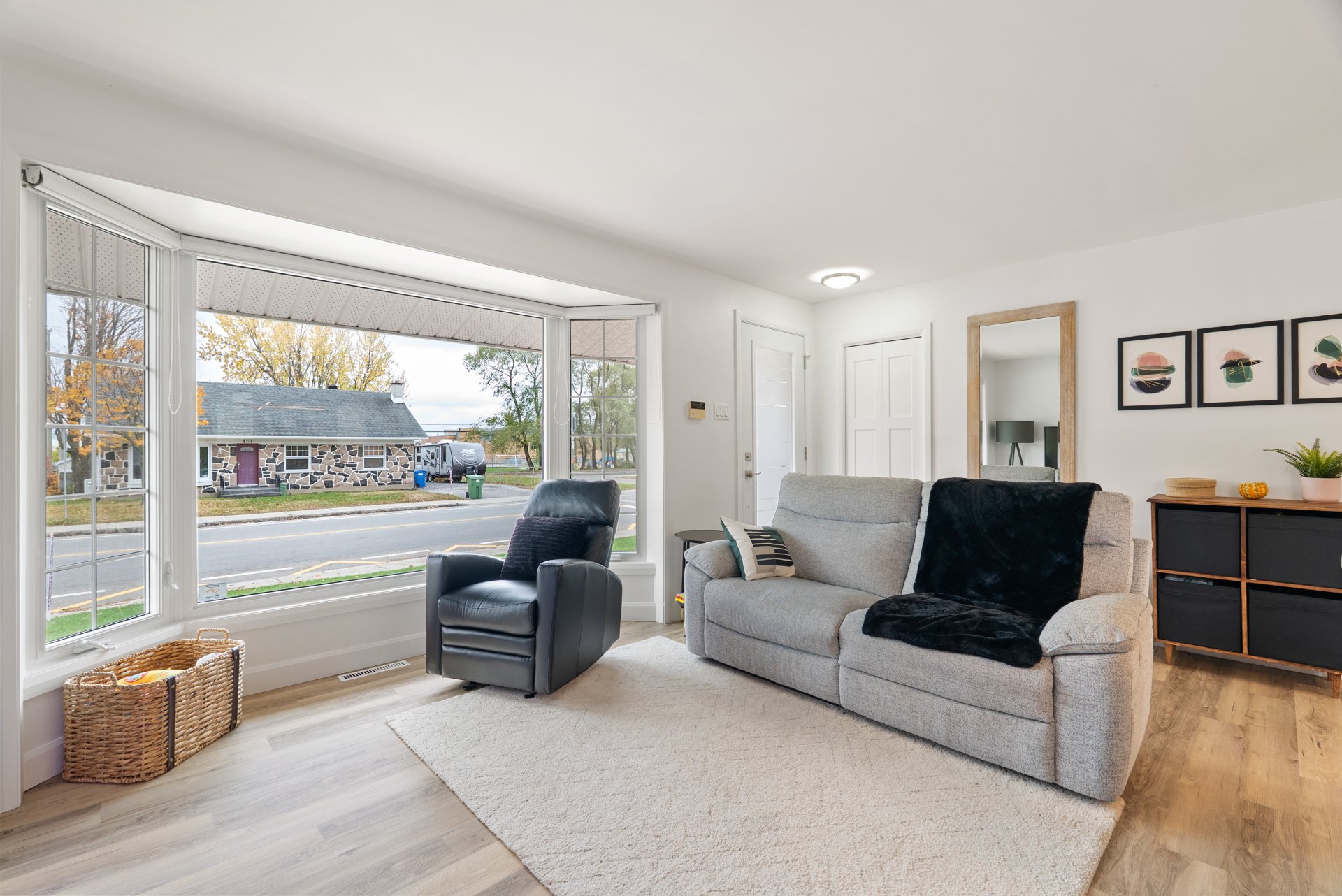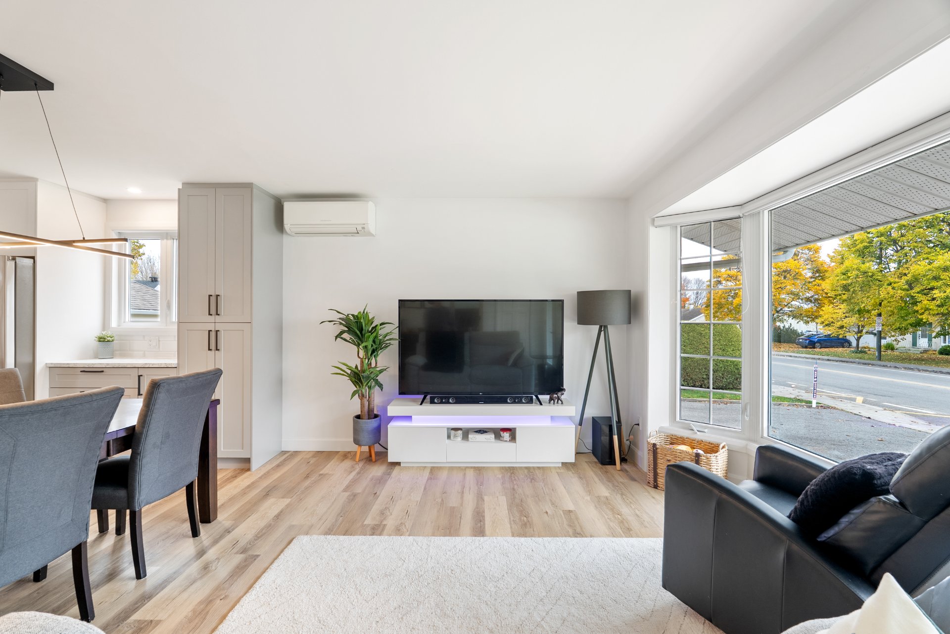 Superbe plain-pied clé en main et surdimensionné, soigneusement entretenu et prêt à emménager. Aire de vie ouverte et lumineuse avec salon baigné de lumière grâce à sa fenêtre en baie, salle à manger conviviale et cuisine moderne deux tons avec îlot et nombreuses armoires. Trois chambres au rez-de-chaussée et salle de bain avec douche vitrée, baignoire et espace buanderie. Sous-sol avec grande salle familiale et son foyer, chambre supplémentaire, salle de bain et salle mécanique. Cour aménagée avec terrasse, balcon et remise. Secteur paisible et près de tous les services.