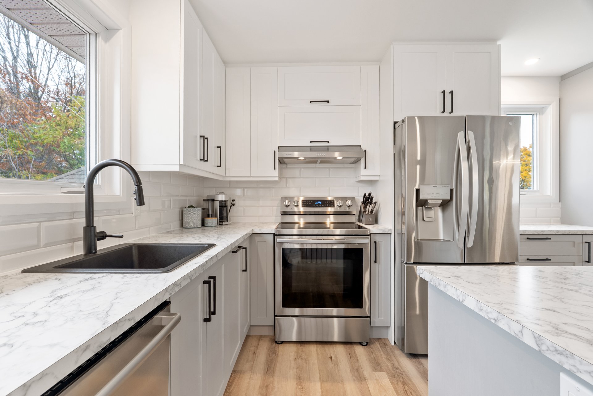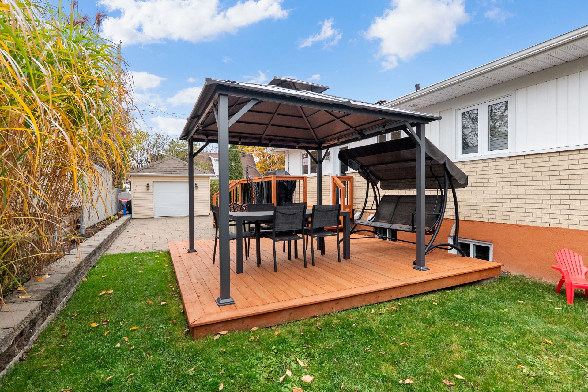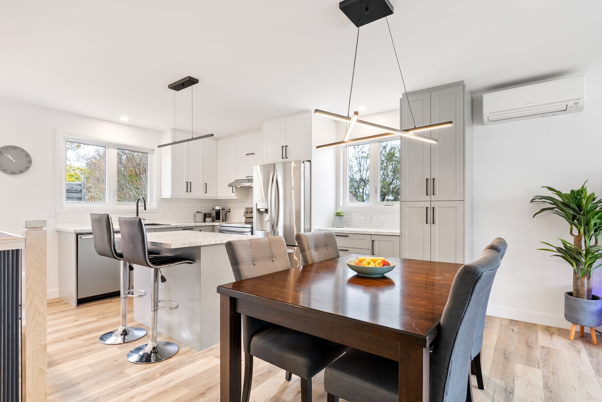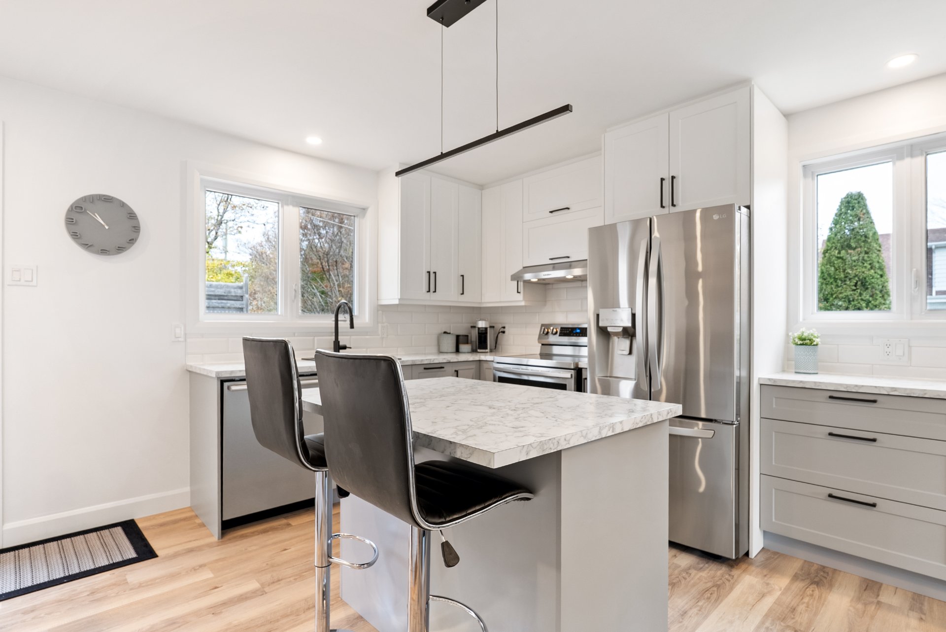 Superbe plain-pied clé en main et surdimensionné, soigneusement entretenu et prêt à emménager. Aire de vie ouverte et lumineuse avec salon baigné de lumière grâce à sa fenêtre en baie, salle à manger conviviale et cuisine moderne deux tons avec îlot et nombreuses armoires. Trois chambres au rez-de-chaussée et salle de bain avec douche vitrée, baignoire et espace buanderie. Sous-sol avec grande salle familiale et son foyer, chambre supplémentaire, salle de bain et salle mécanique. Cour aménagée avec terrasse, balcon et remise. Secteur paisible et près de tous les services.