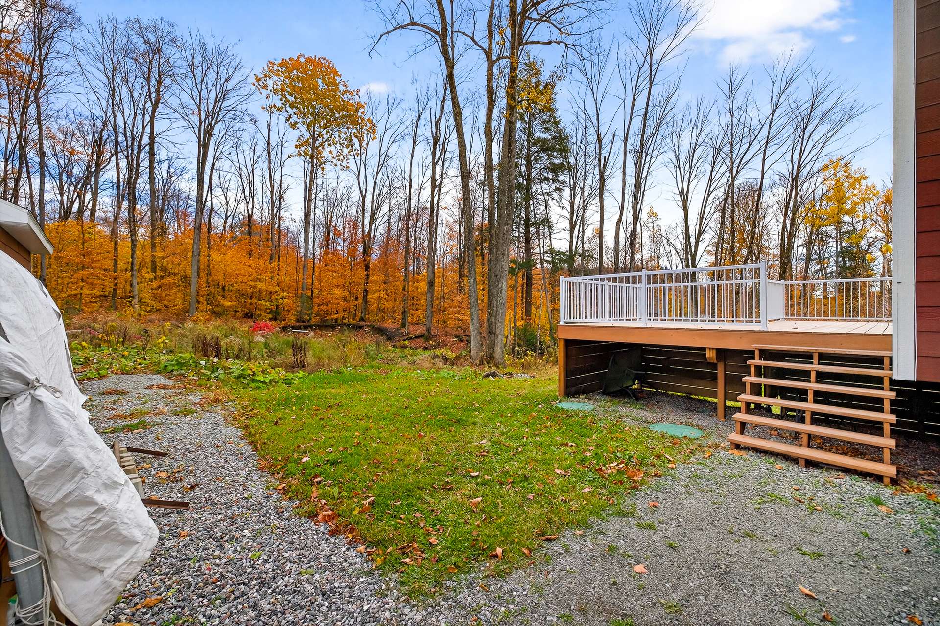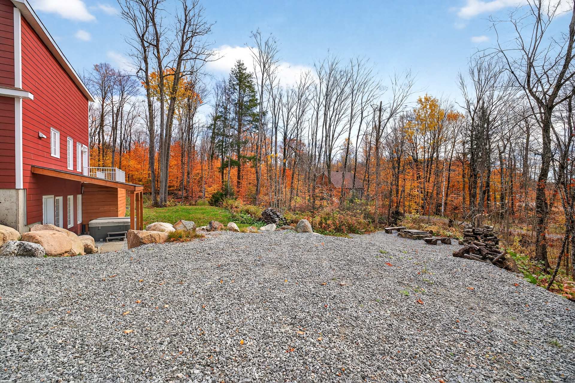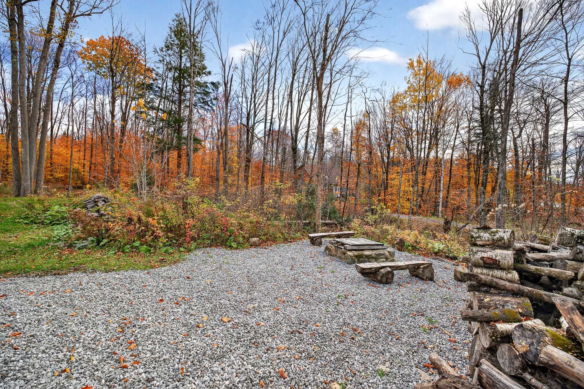 À l'extérieur, le terrain boisé de plus d'un acre offre