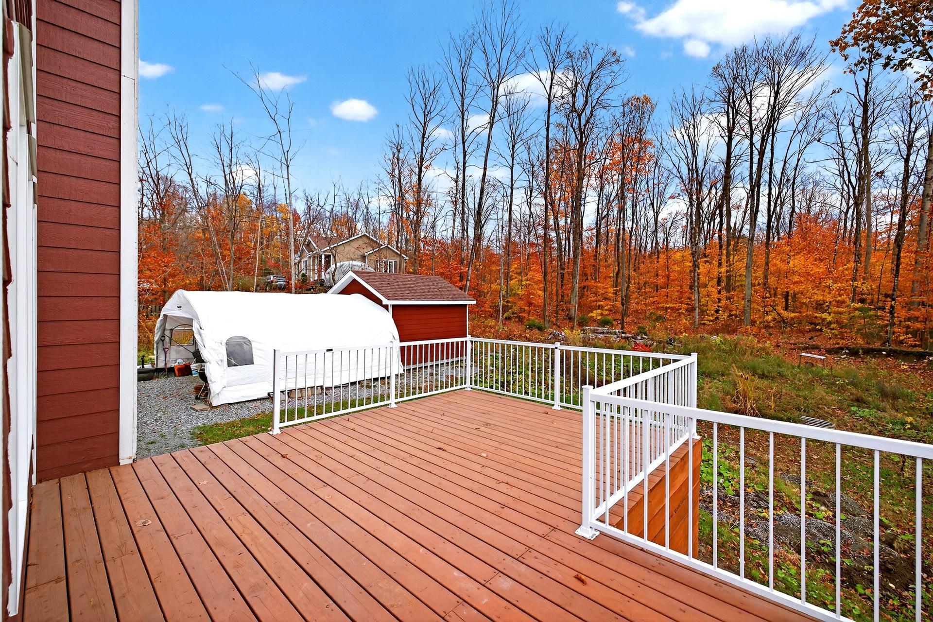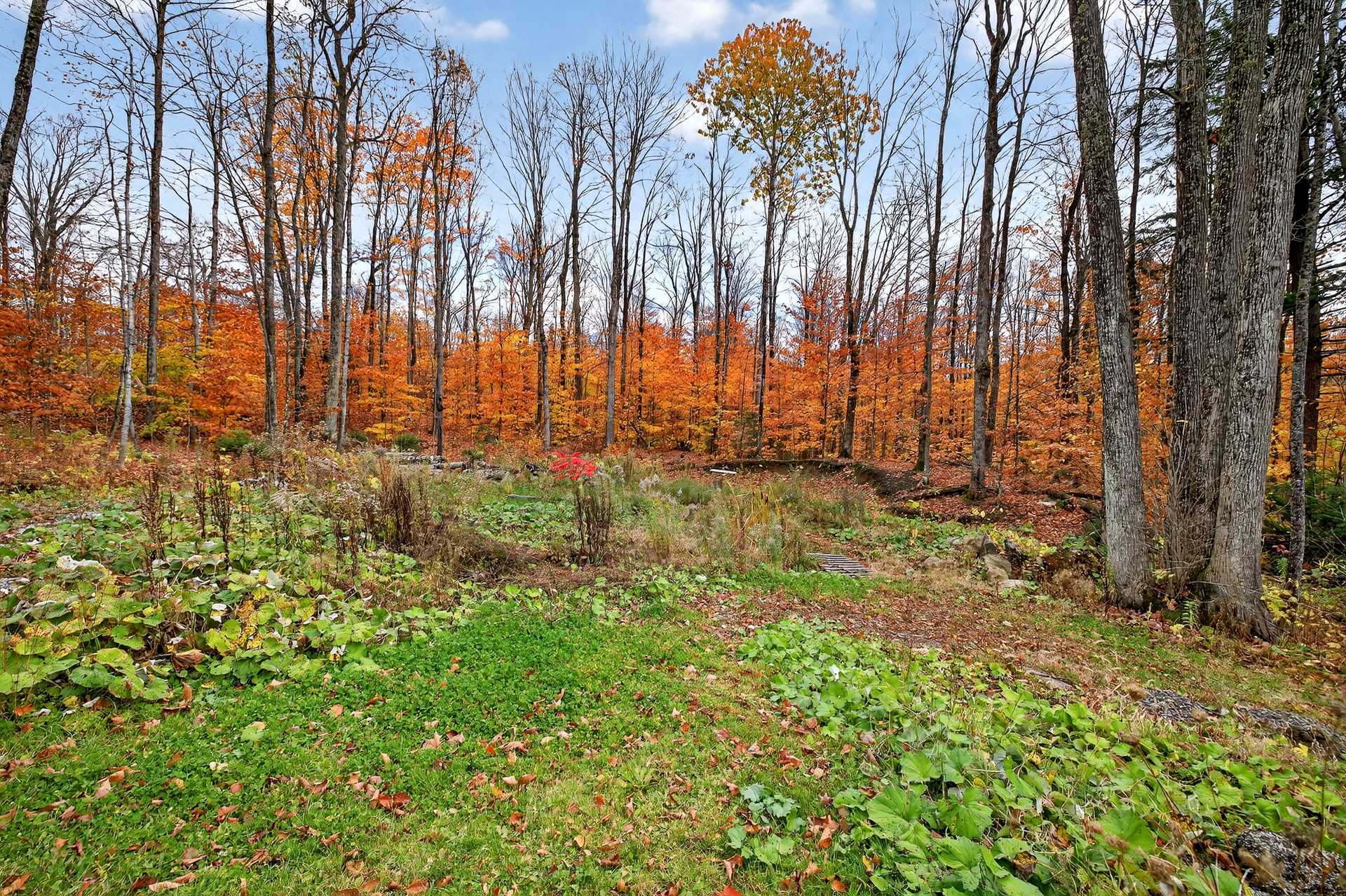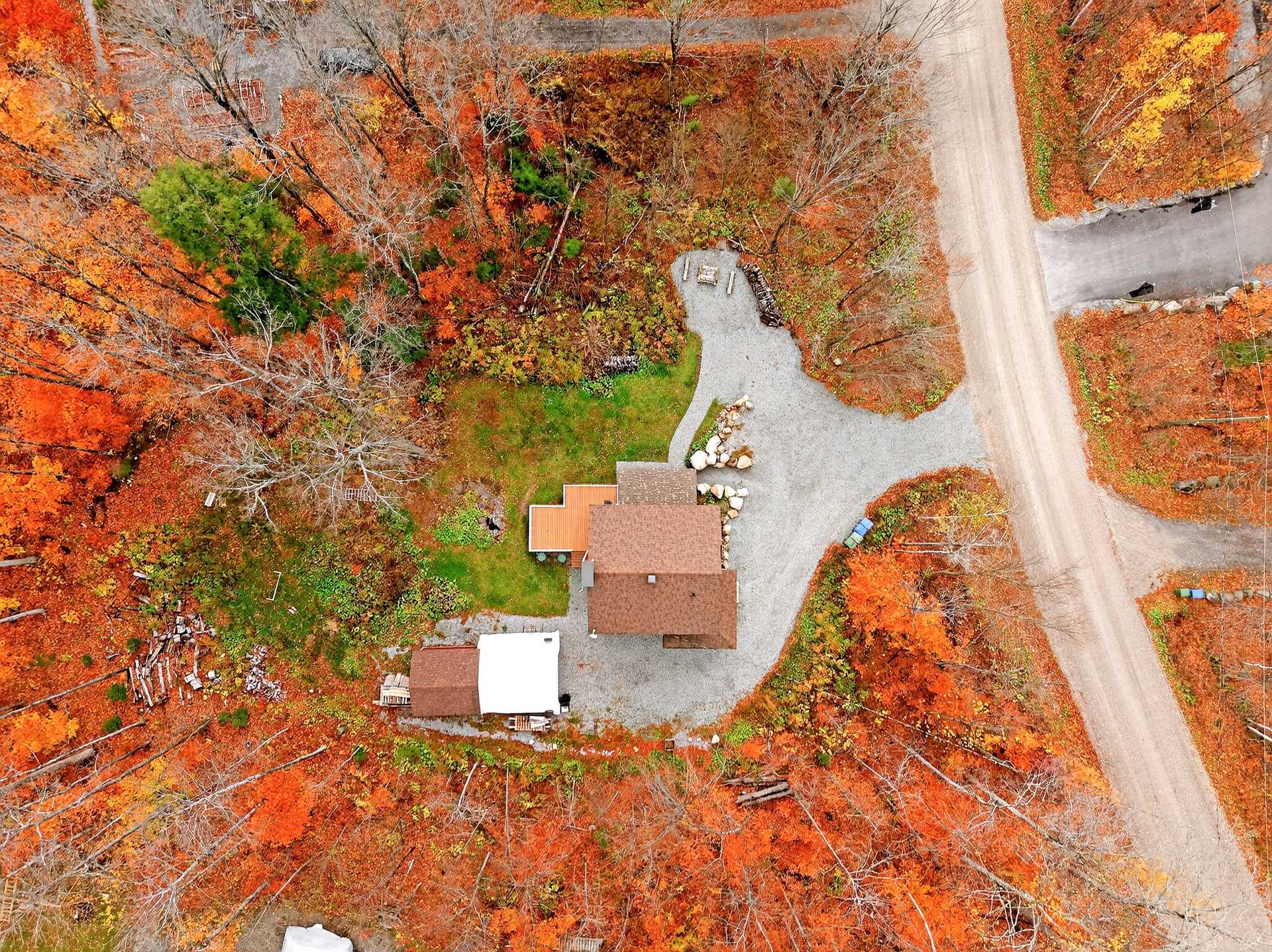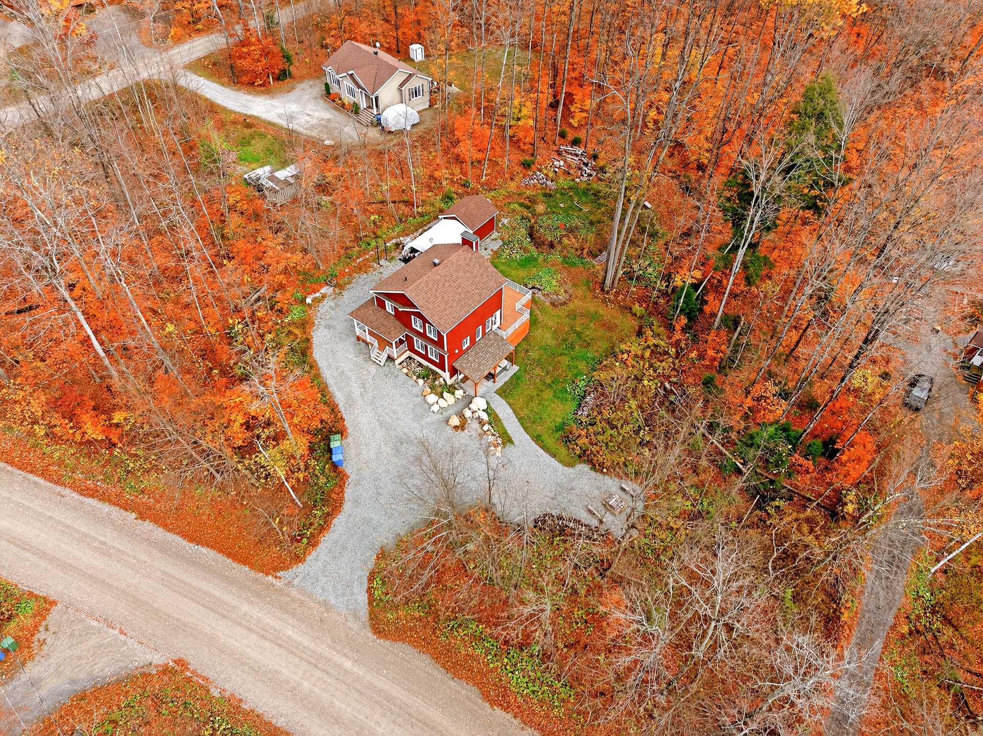 À l'extérieur, le terrain boisé de plus d'un acre offre