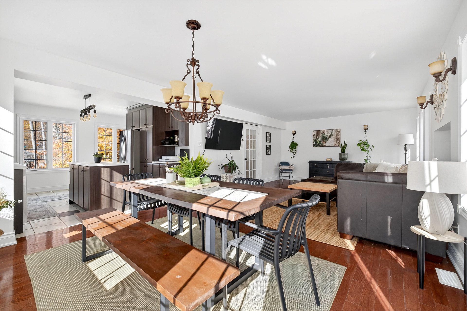 ambiance lumineuse et un concept ouvert avec salon, salle à